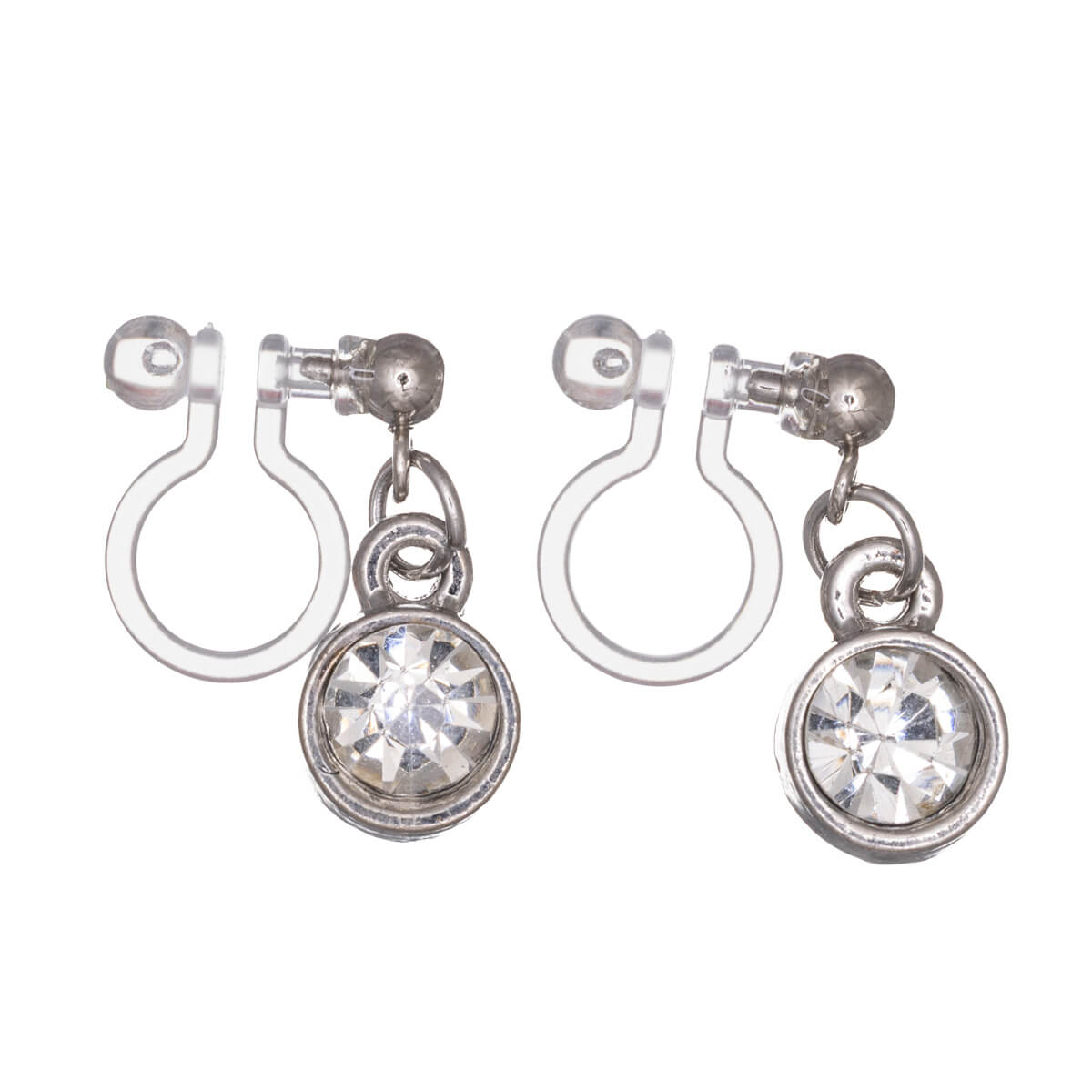 Glittrande stenar hänger vackert i dessa clip-on örhängen. Clipsmekanismen är mycket diskret och bekväm att bära.