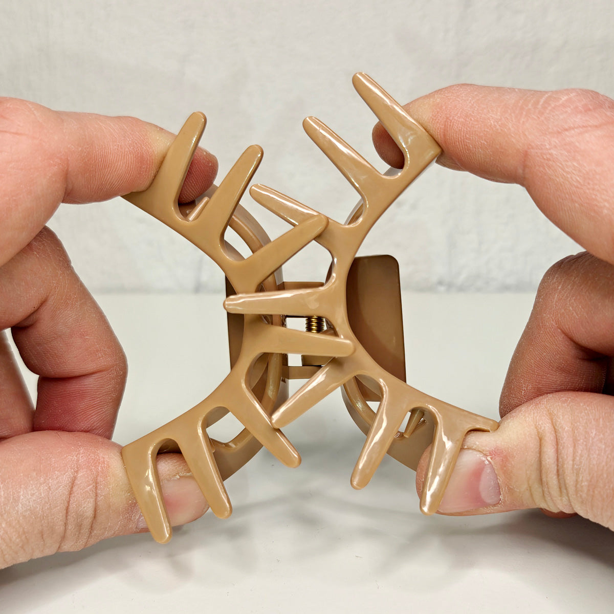 Ett hårspänne med tänder är ett enkelt sätt att fästa och lyfta håret. Hajtänderna gör att du snabbt kan fästa håret. Den flexibla plasten i denna modell går inte sönder vid användning.
