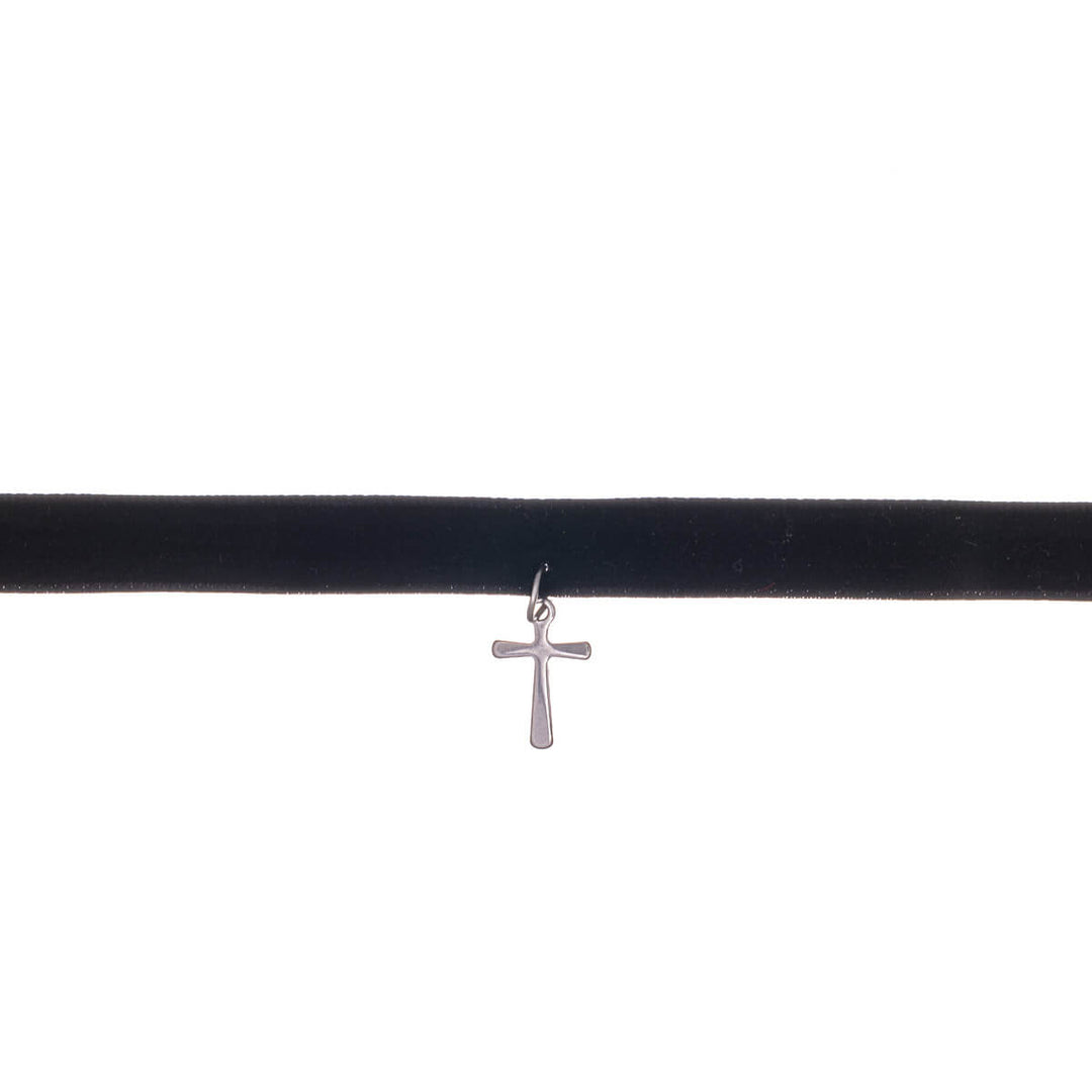 Sammet choker halsband kors hänge