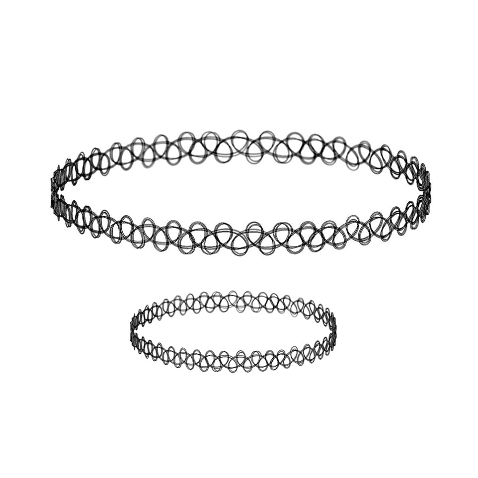 Återupplev den nostalgiska stilen från 90-talet med detta ikoniska tatueringshalsbandset! Setet innehåller både ett klassiskt elastiskt halsband och ett perfekt matchande armband. Båda är tillverkade av lätt och flexibel nylonplast som anpassar sig vackert efter bäraren.