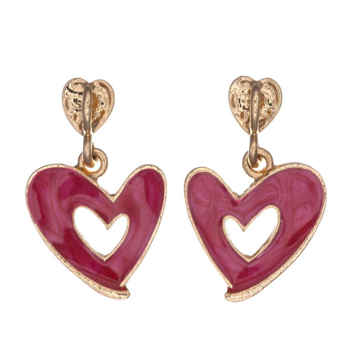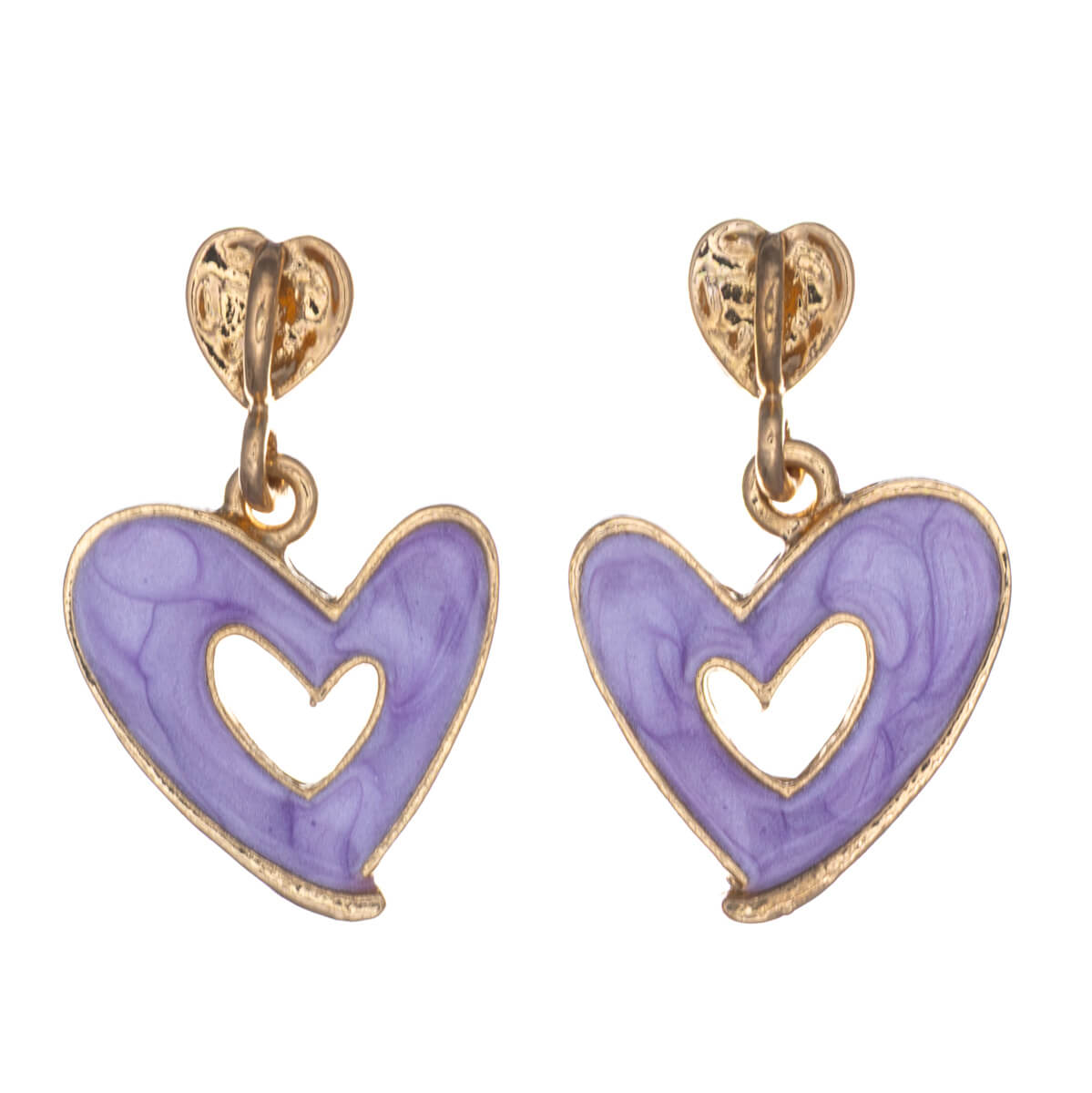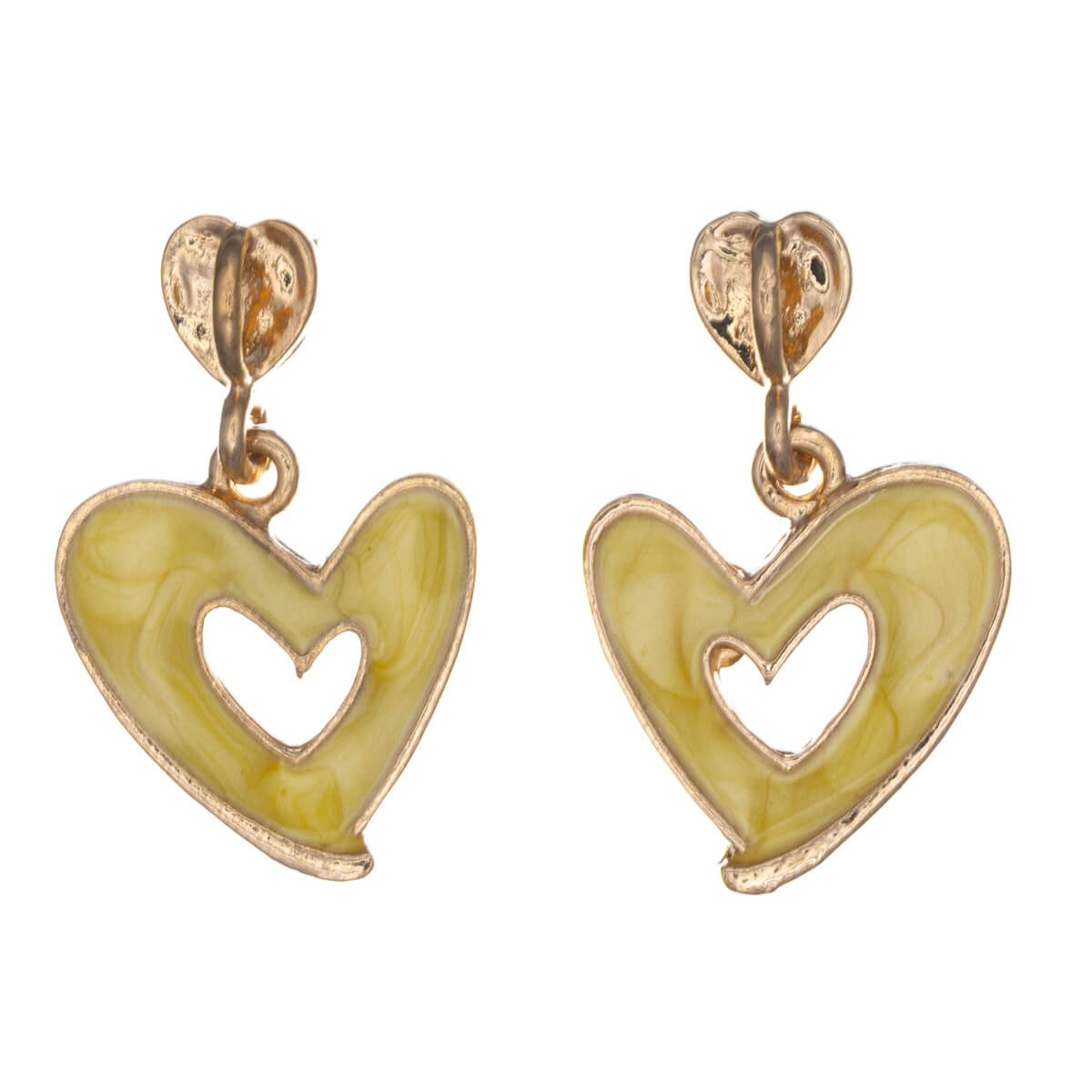 Två platta ringar i olika storlekar bildar ett elegant örhänge. Den övre ringen är guldfärgad och den nedre ringen finns i en mängd olika färger.