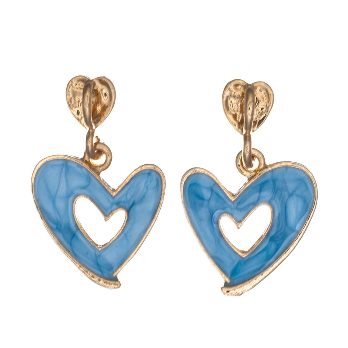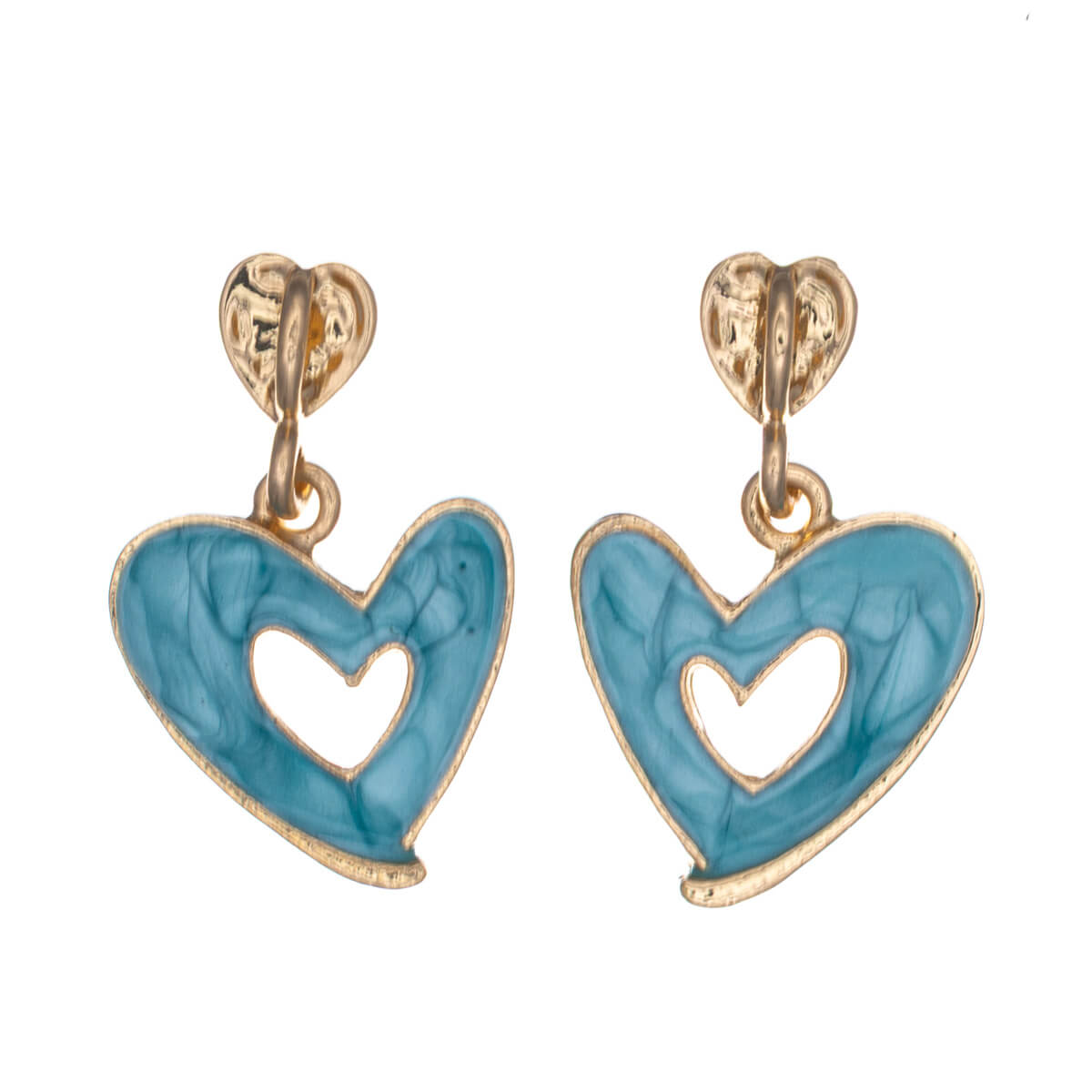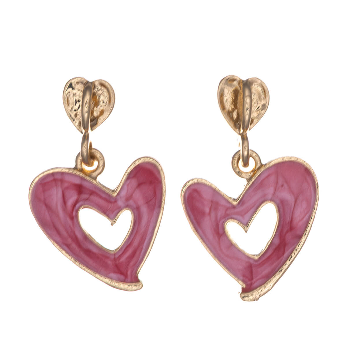 Två platta ringar i olika storlekar bildar ett elegant örhänge. Den övre ringen är guldfärgad och den nedre ringen finns i en mängd olika färger.