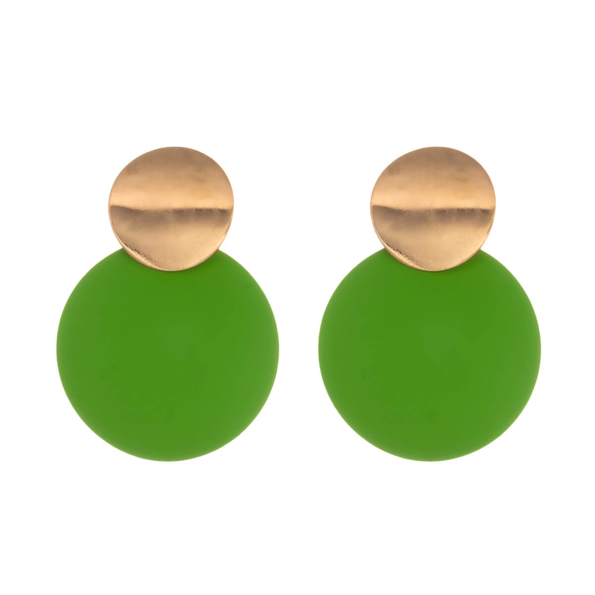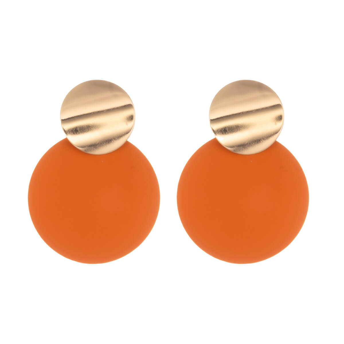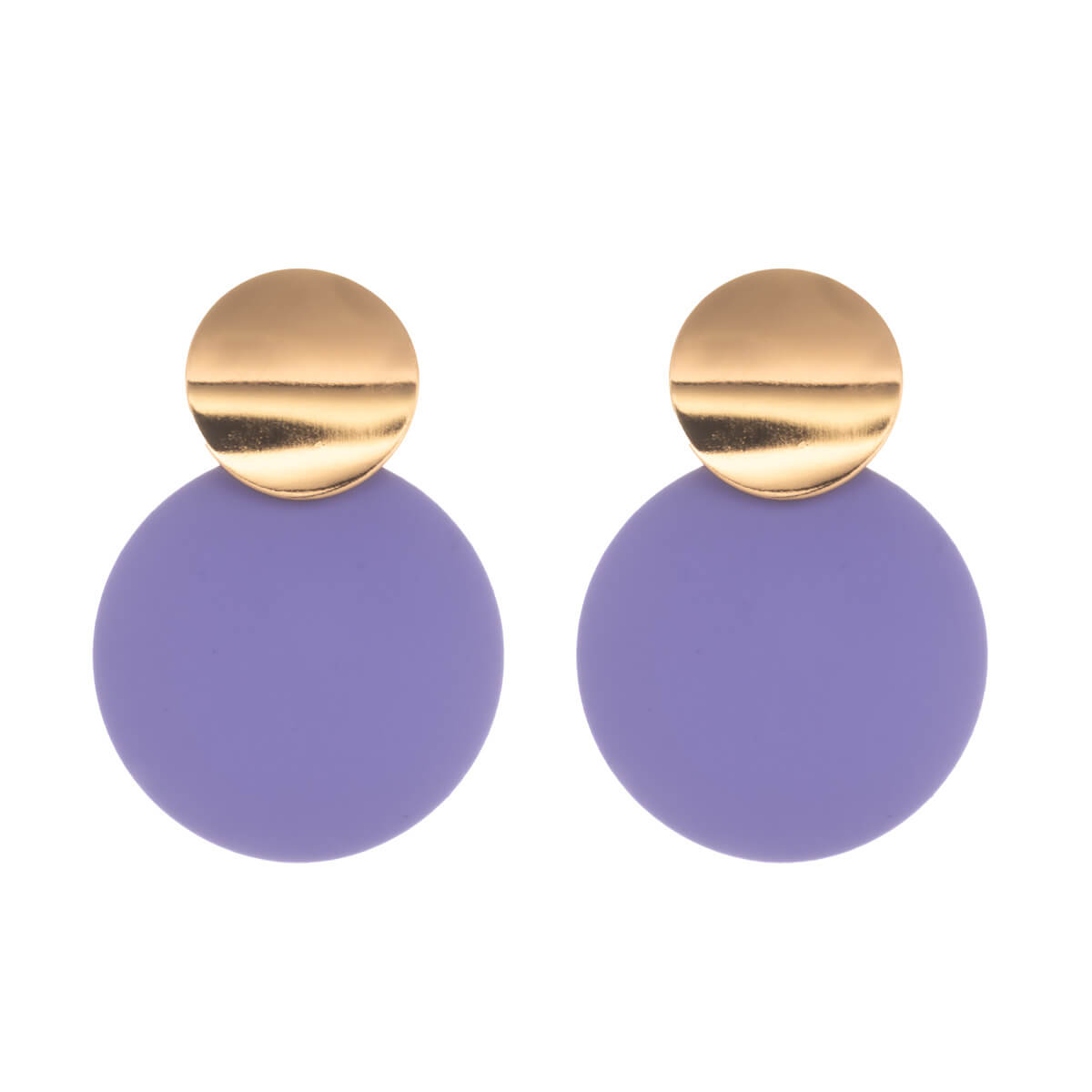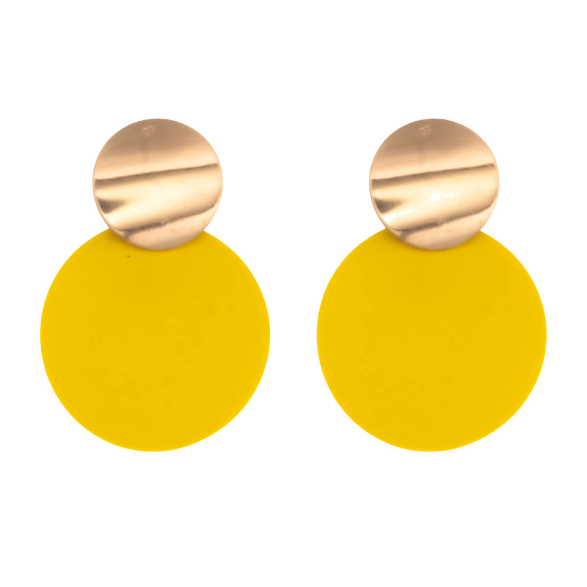 Två platta ringar i olika storlekar bildar ett stilfullt örhänge. Den övre ringen är guldfärgad och den nedre ringen finns i flera färger.