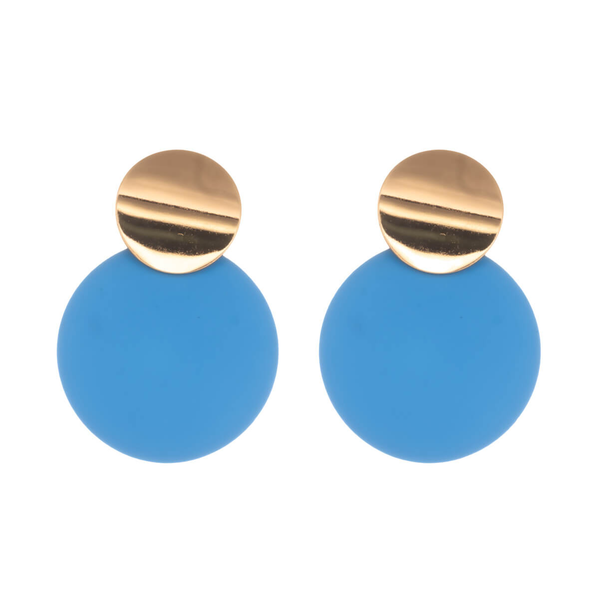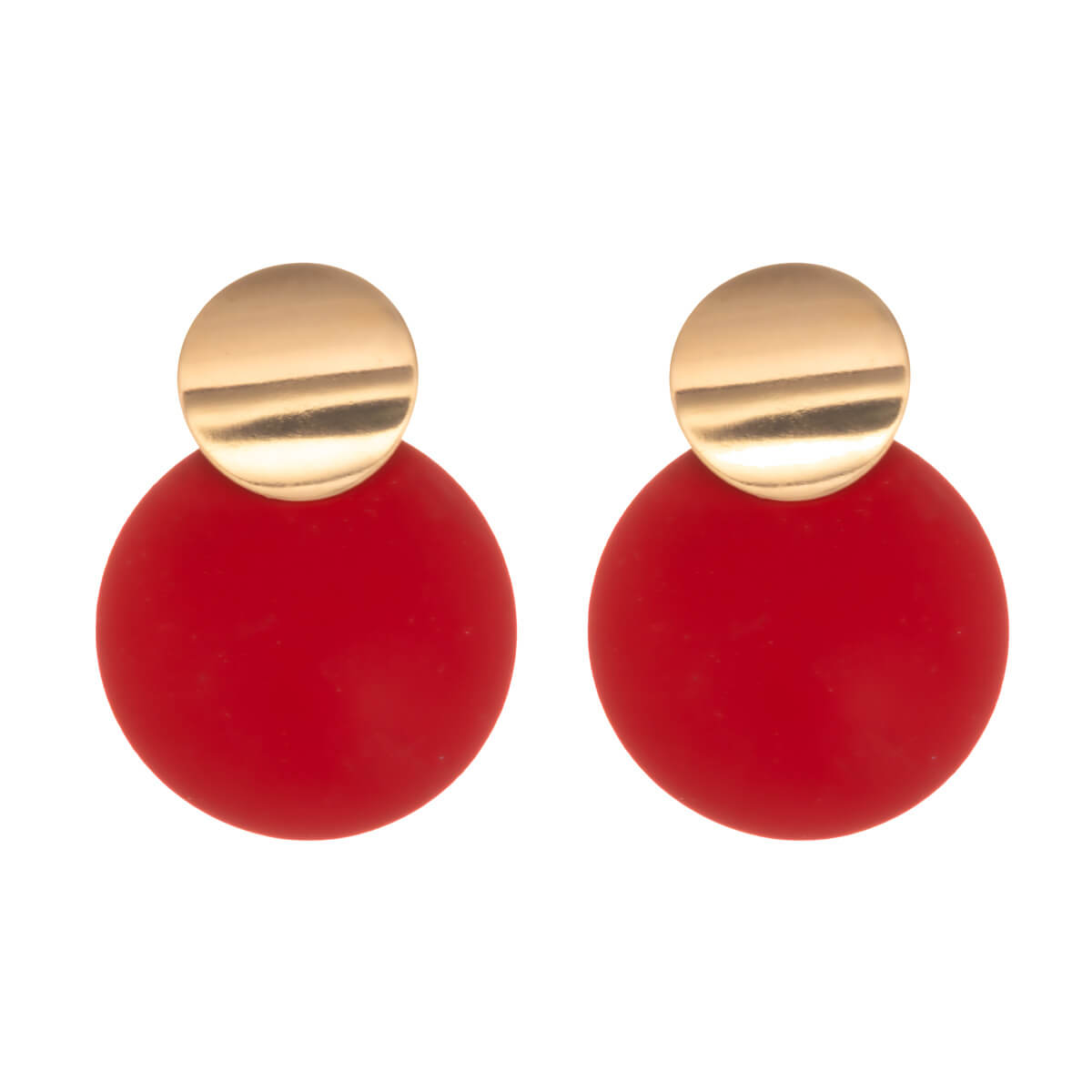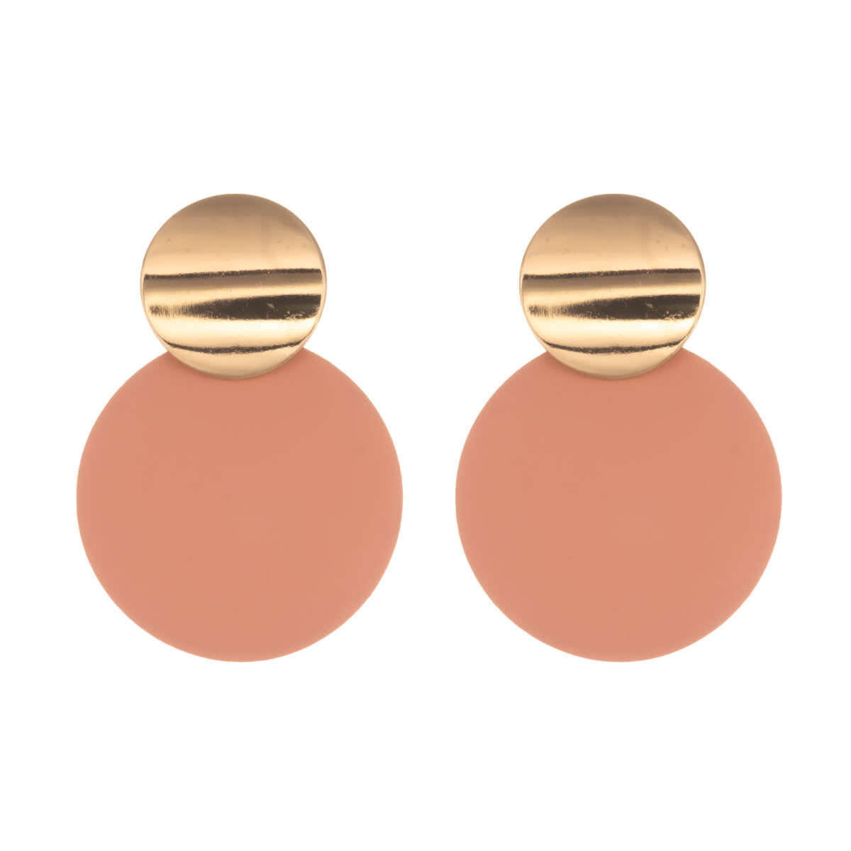 Två platta ringar i olika storlekar bildar ett stilfullt örhänge. Den övre ringen är guldfärgad och den nedre ringen finns i flera färger.