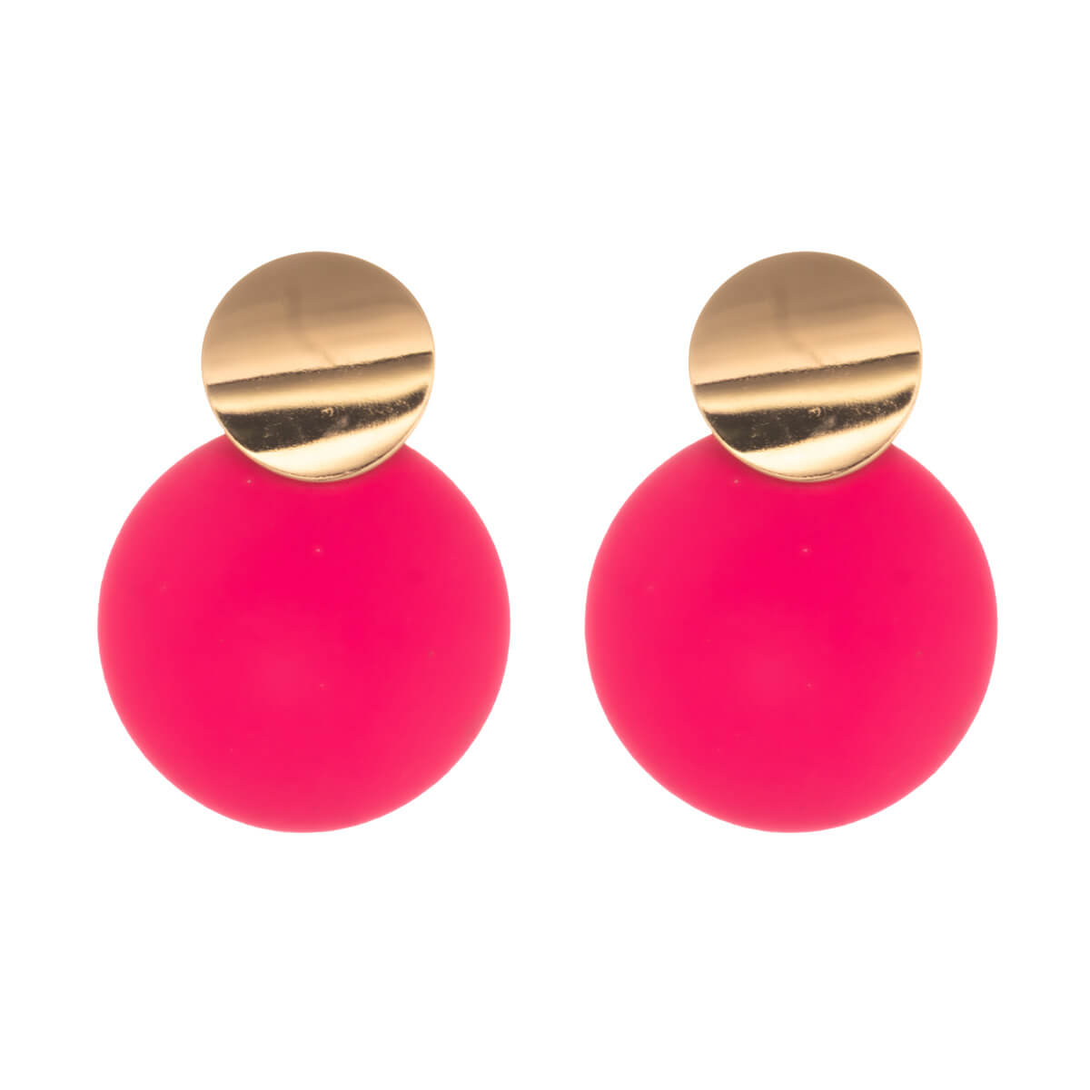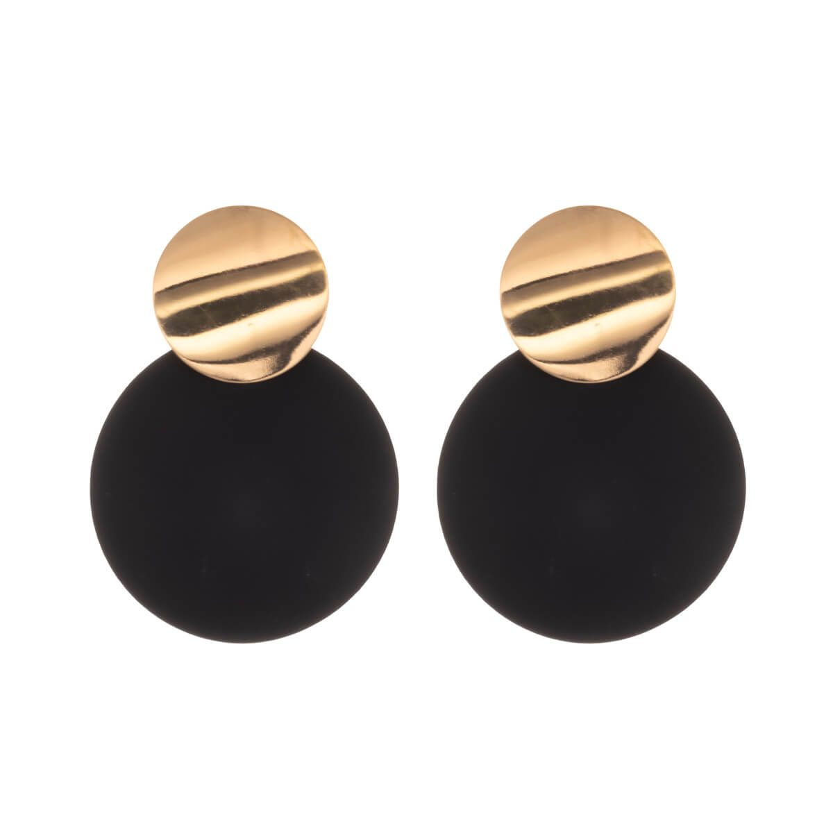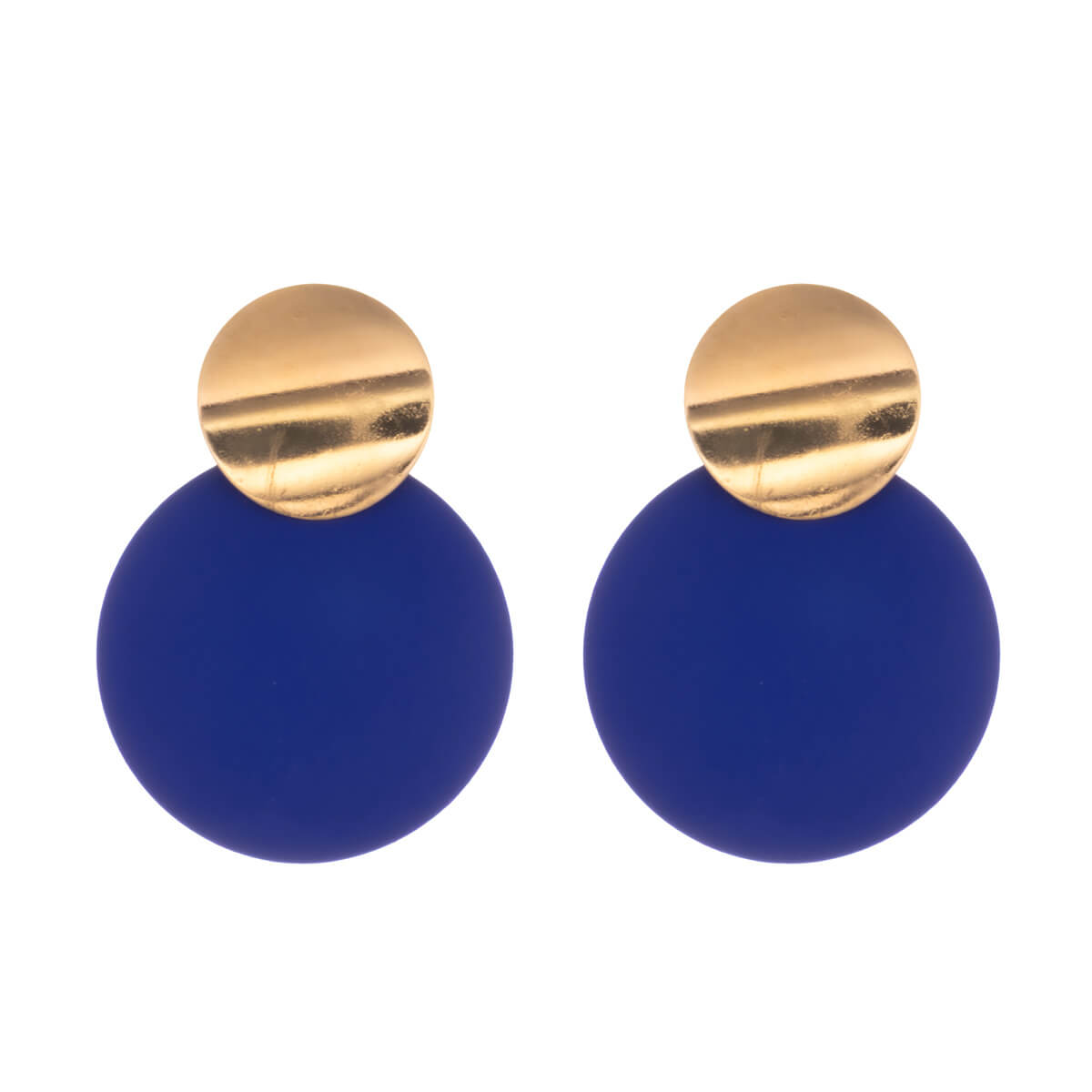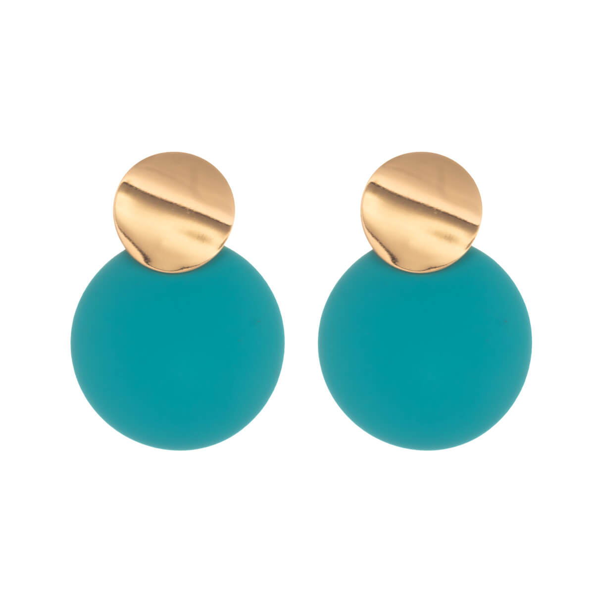 Två platta ringar i olika storlekar bildar ett stilfullt örhänge. Den övre ringen är guldfärgad och den nedre ringen finns i flera färger.