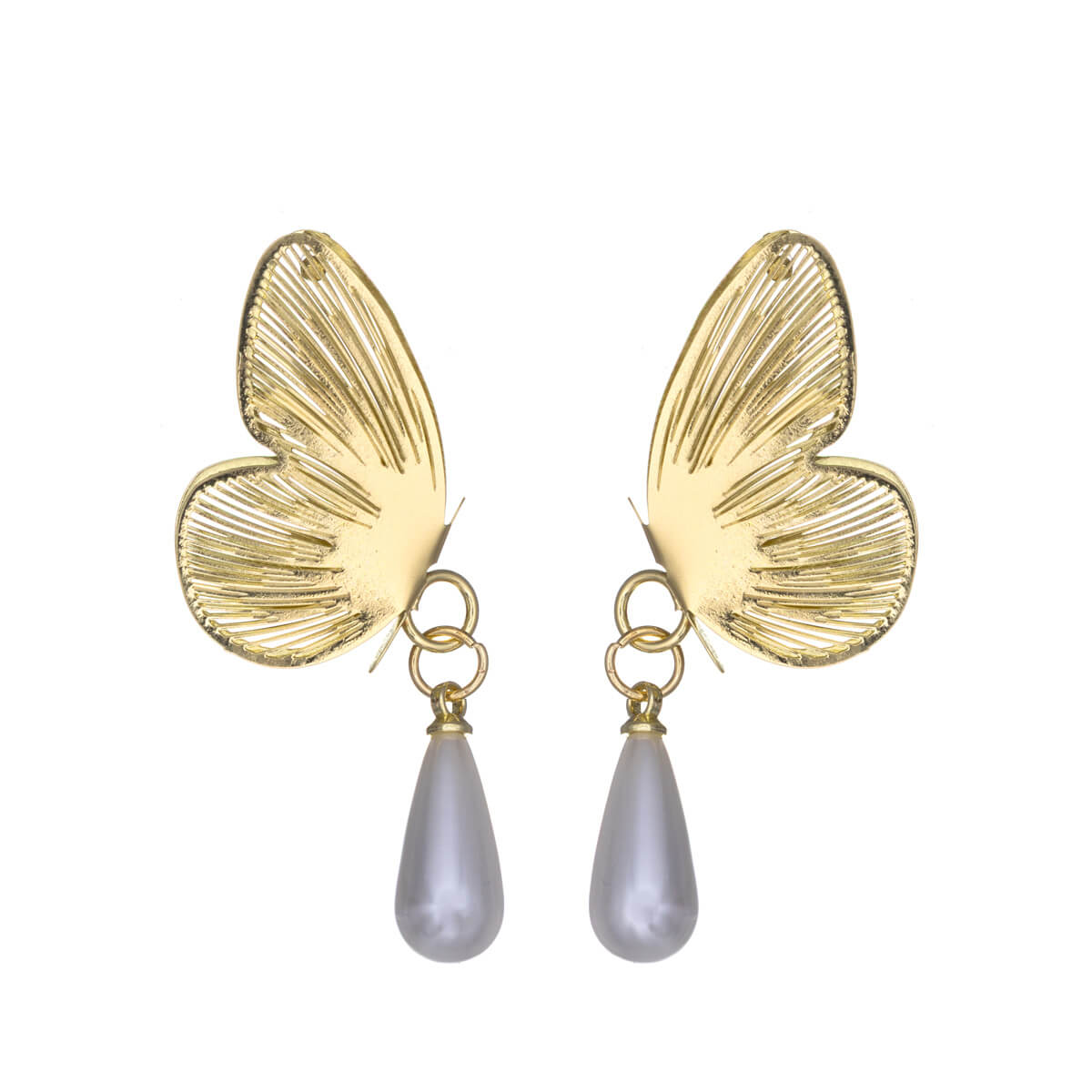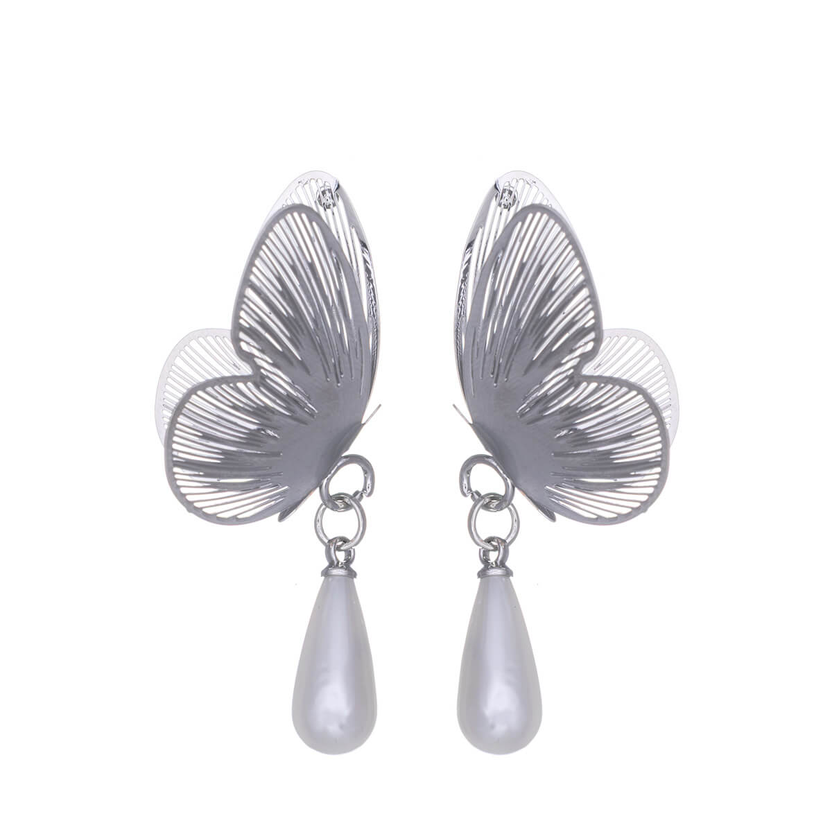 Fjärilsörhängen med pärlhänge (Stål 316L)