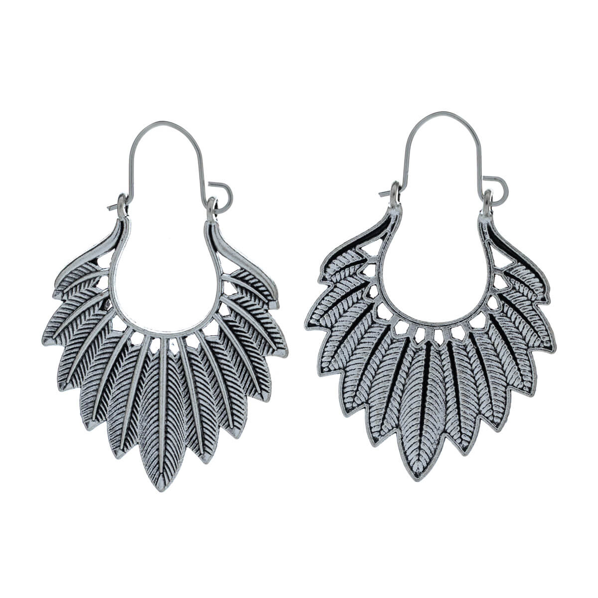 Snygga metalliska fjäderörhängen som passar bra på örat. Den patinerade metalliska nyansen ger en vacker diskret glans till örhänget.
