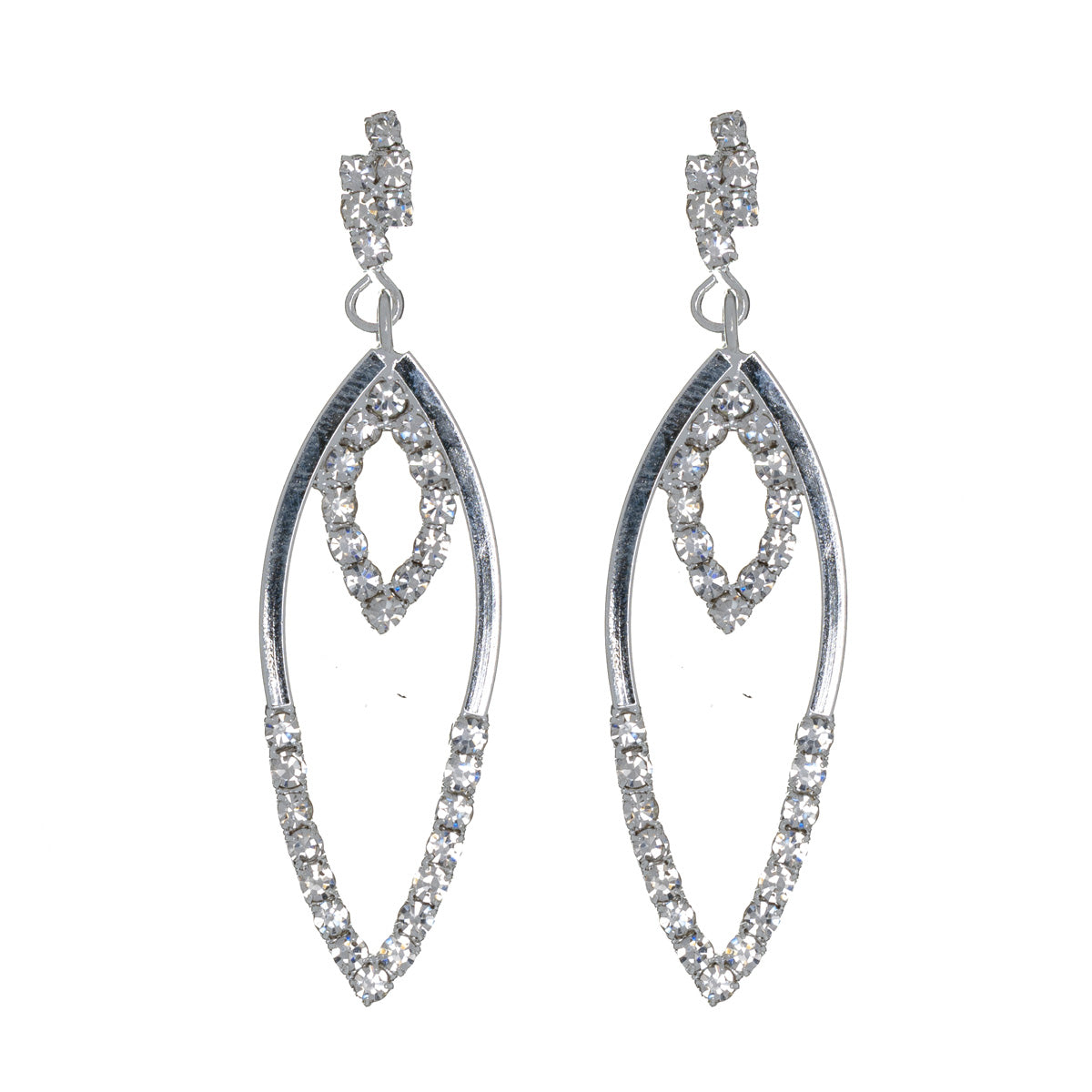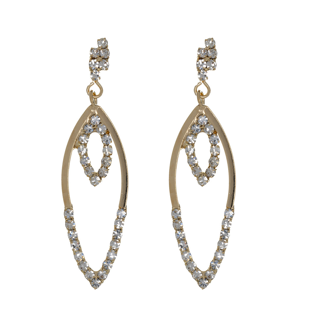 Örhängena i metall är delvis dekorerade med klara glasstenar. Den här örhängenas design är perfekt som festörhängen.