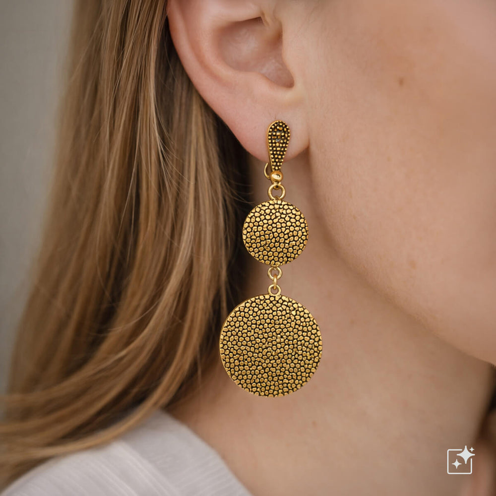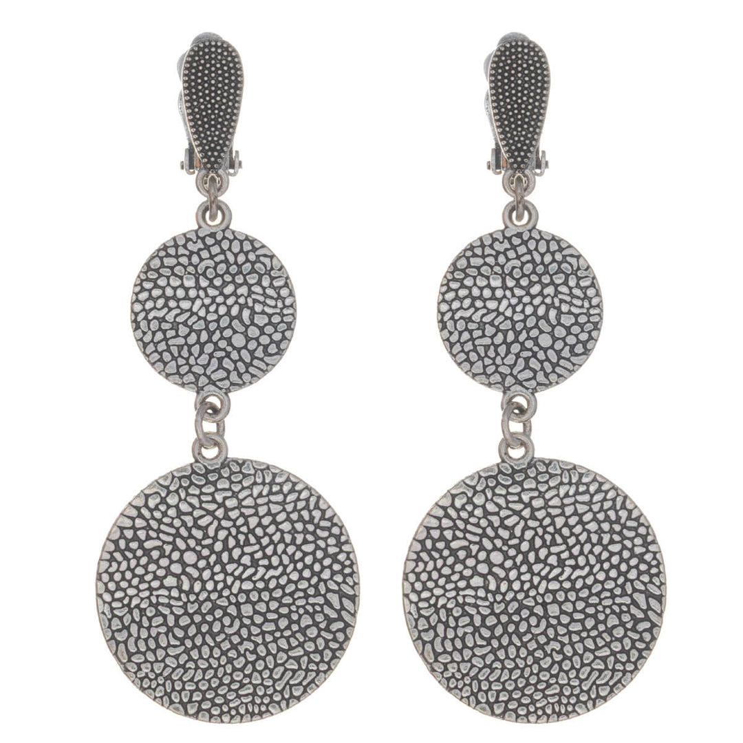 Platta ringar som hänger i klämörhängen