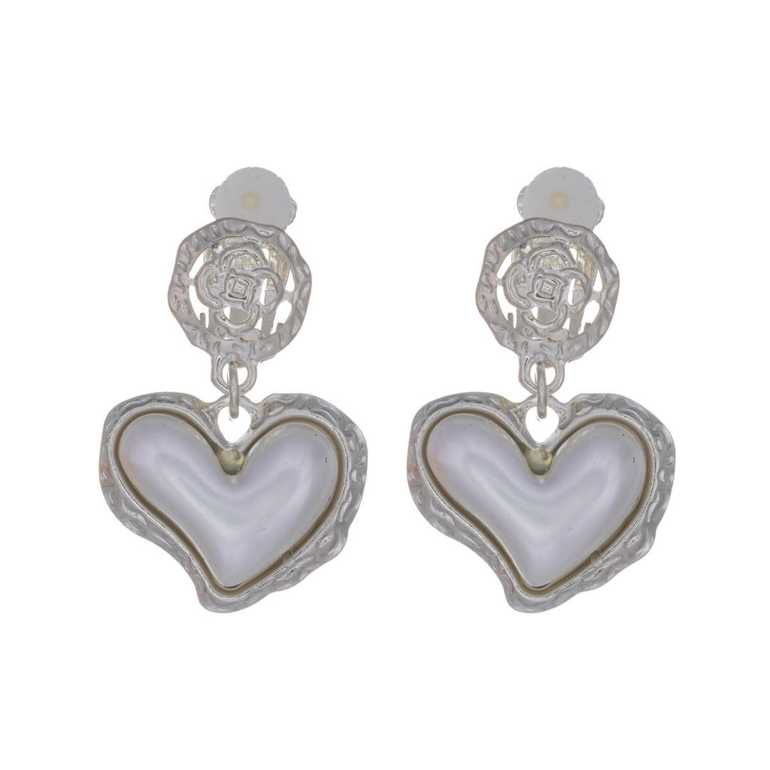 Hängande örhängen med hjärtformade pärlor och klämfäste