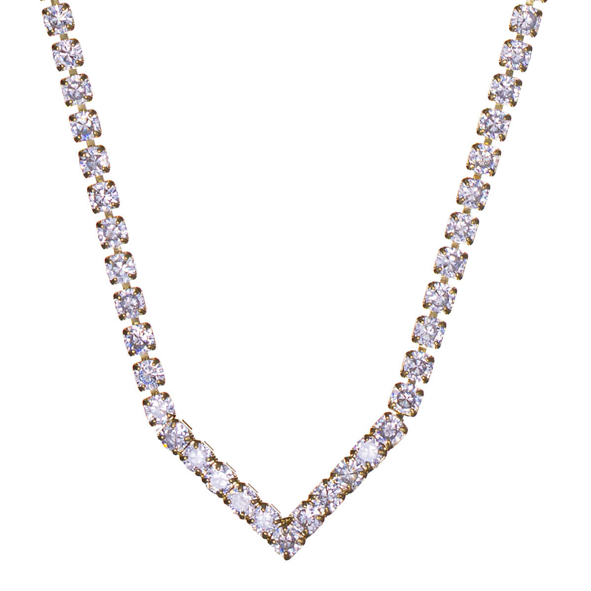 Ett elegant och tidlöst V-format halsband med zirkonia som ger ett vackert ljus till halsen och tillför en touch av diskret lyx till alla festkläder. Den enkla, korta designen sitter vackert på nyckelbenet och passar både till aftonklänningar och minimalistiska kläder. Perfekt för fester, kvällsevenemang och speciella tillfällen.