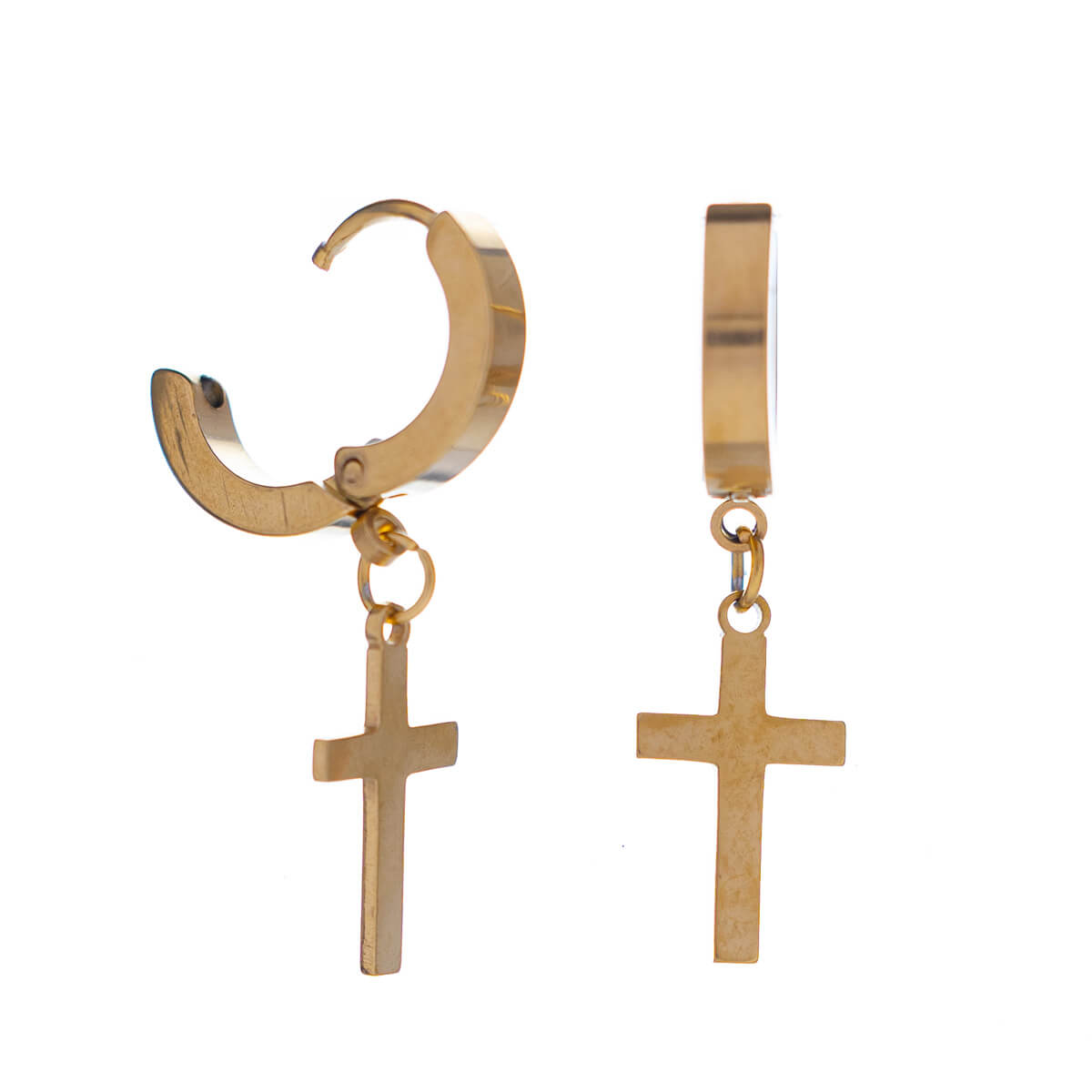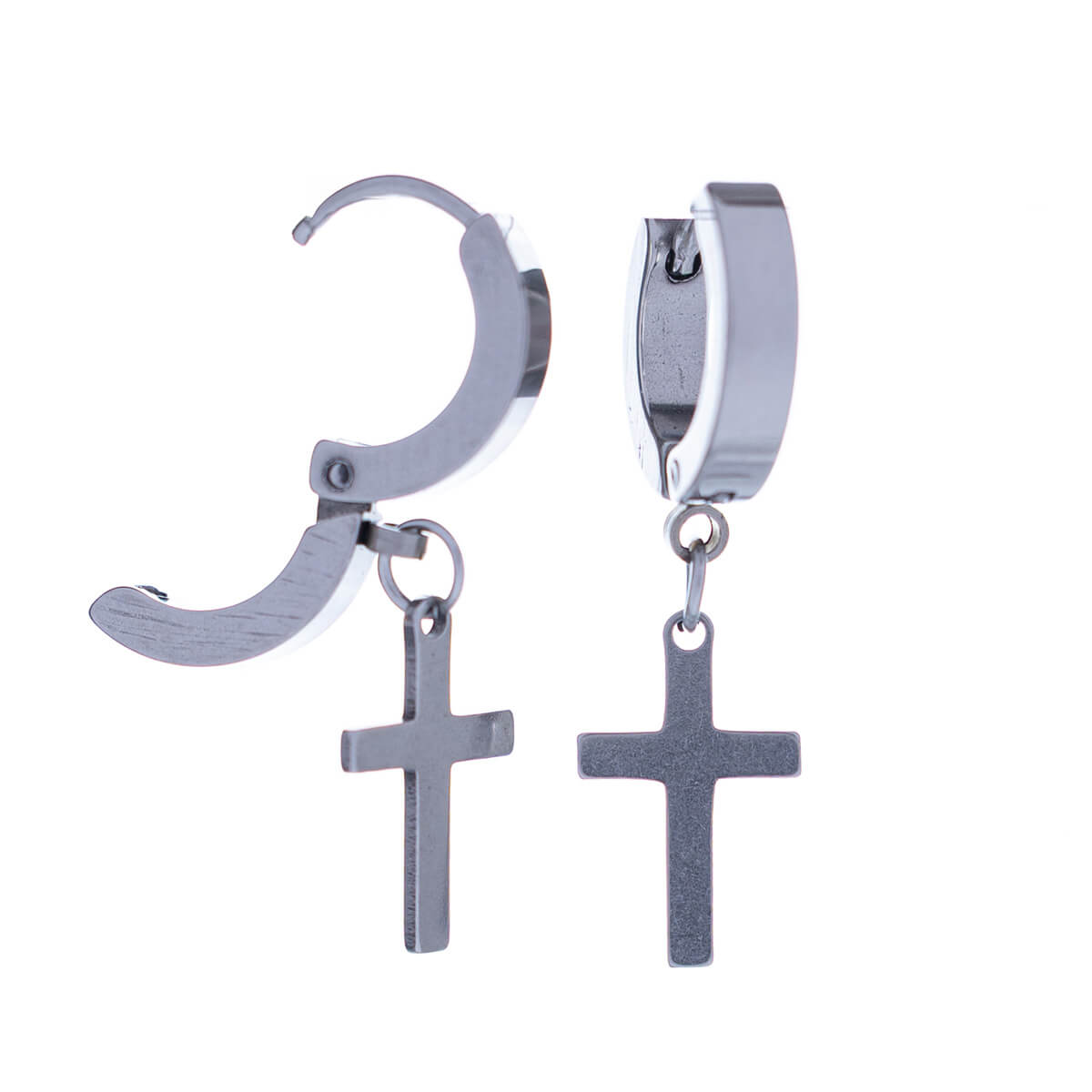 Dessa eleganta korshängen är perfekta för både män och kvinnor. Säker kirurgiskt stål är alltid ett bra val för örhängen. Örhänget med snäpplås är lätt att sätta på och ta av. Det sitter säkert på plats.
