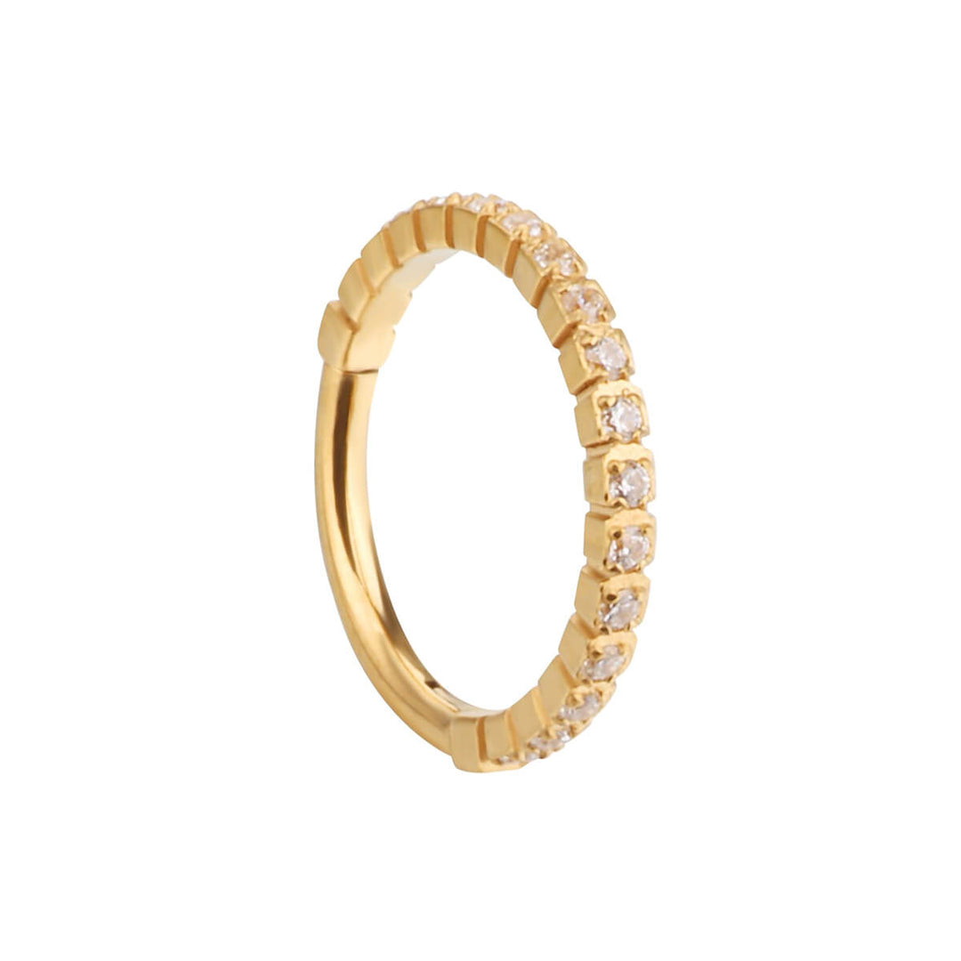 Oscillerad zirkonia pave clicker guldpiercingring 1,2mm (PVD-titan G23)