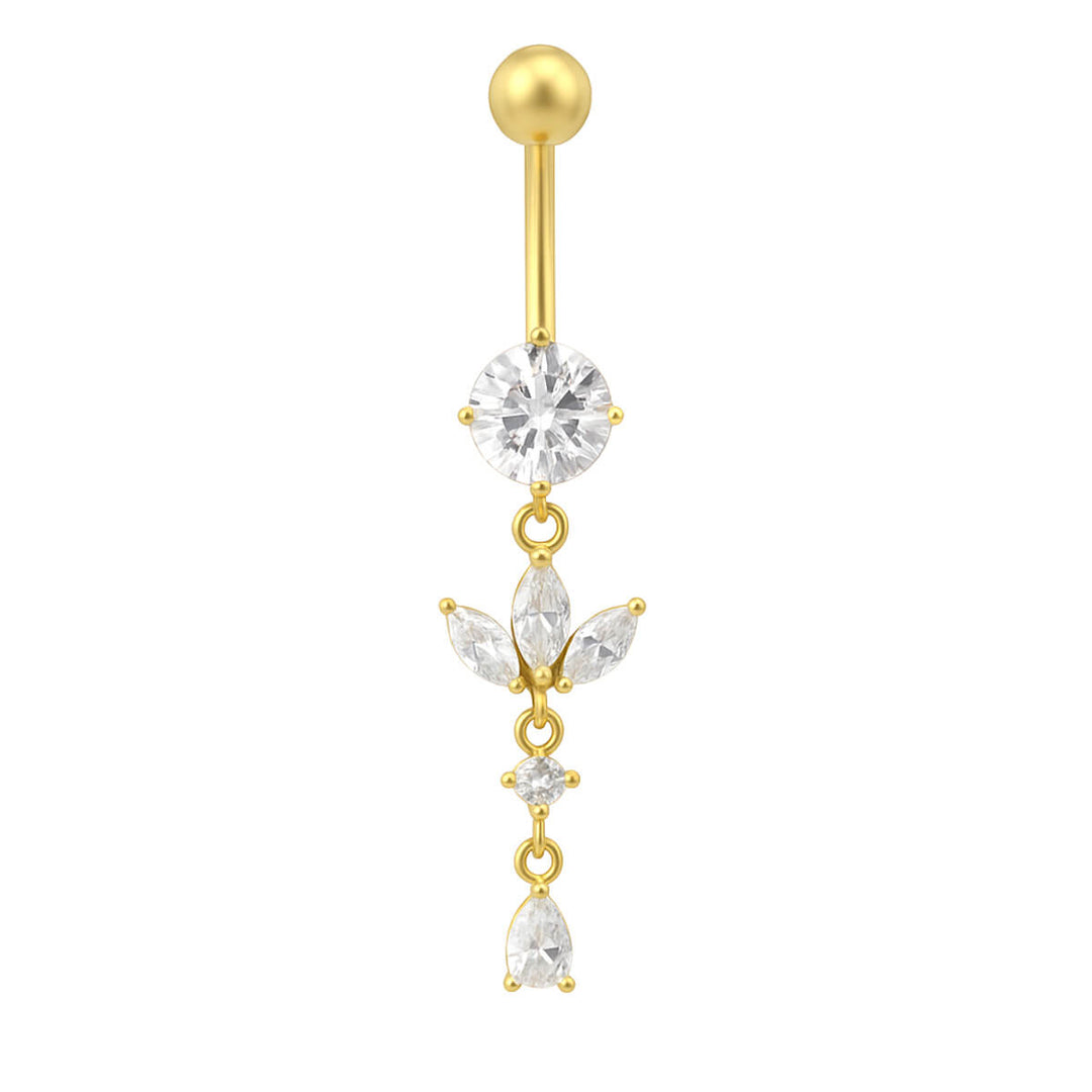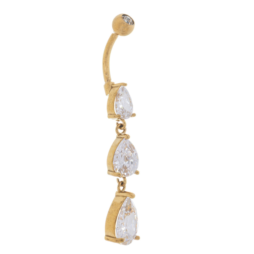 Tre droppformade zirkoniastenar hängande från en navel (Stål 316L)