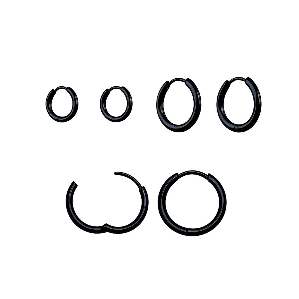 Svarta små örhängen i stål, set med 3 par (8 mm, 10 mm och 12 mm)
