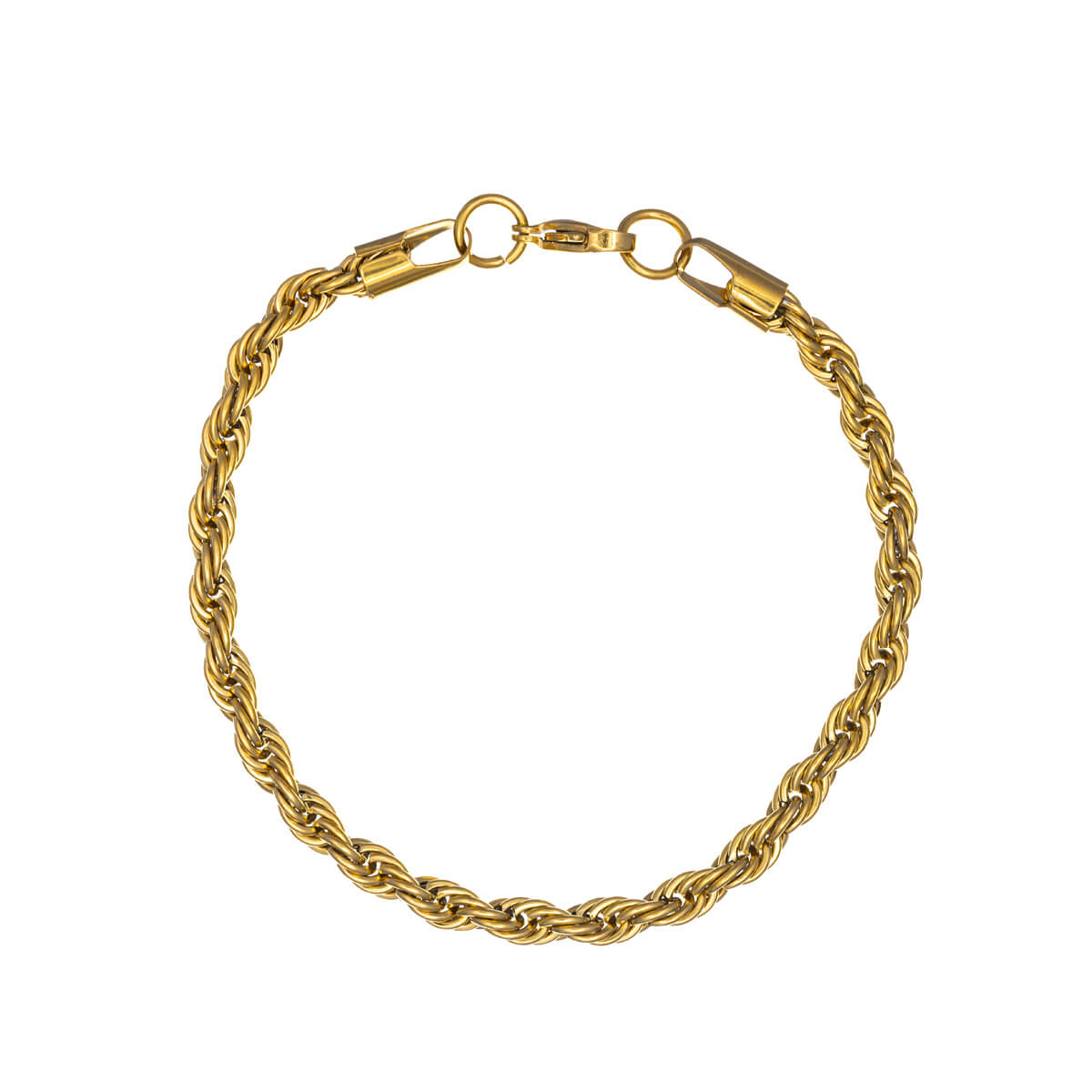 Twisted cordelia-kedja är elegant och gnistrande. Det starka stålarmbandet tål slitage. Armbandet är helt tillverkat av kirurgiskt stål.