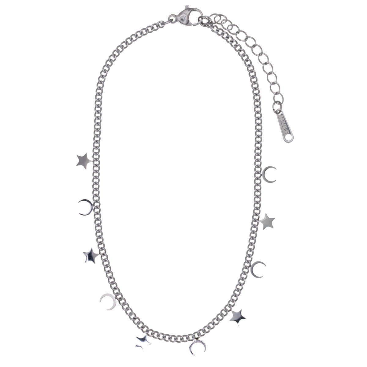 Moon and star pendants adorn this ankle chain. The armour chain is a strong braid that will stand up to wear and tear. The strong steel ankle bracelet can easily withstand water and summer heat.