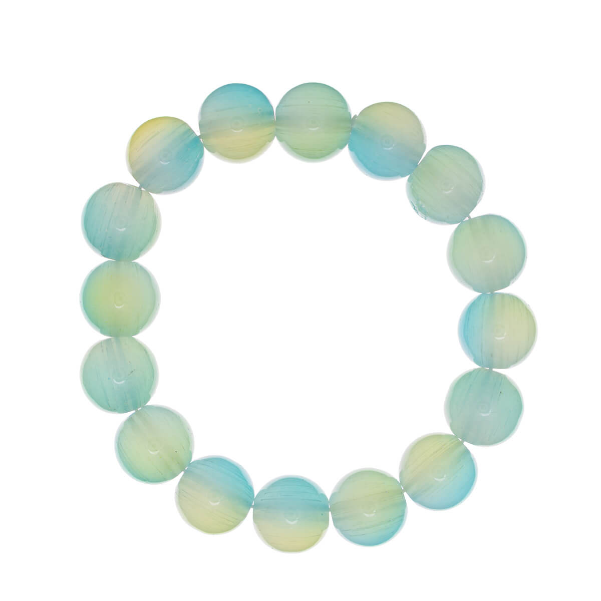 Colourful glass beads come in delicious shades in this bracelet design. The flexible silicone band does not need a separate clasp, but the bracelet is slipped onto the wrist.