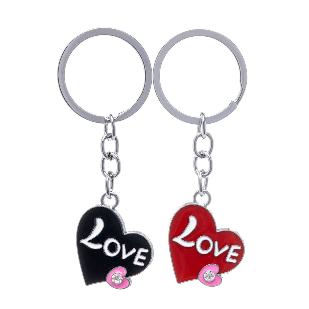 In a package of two keyrings, one is black and the other is red. Whether it's a piece of jewellery for a friend or a loved one, it's sure to make a great gift. The keyring also fits perfectly in a backpack or purse. A great gift for Valentine's Day!