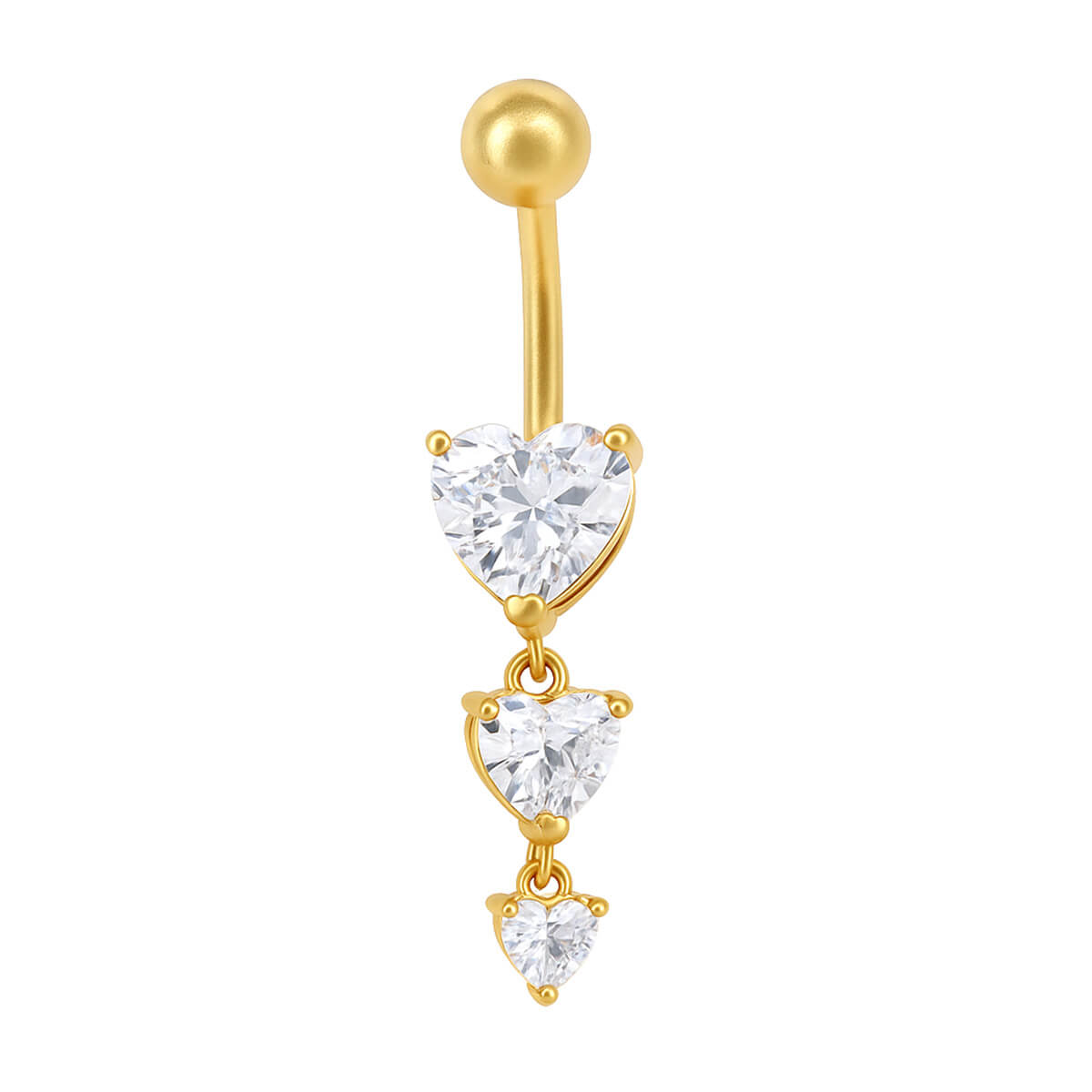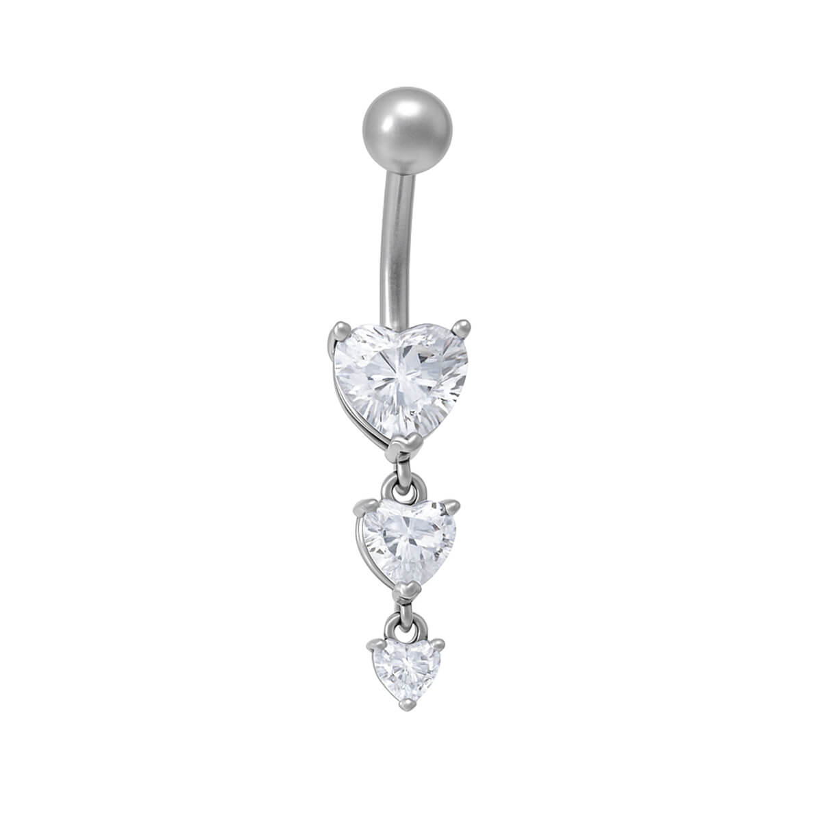 Elegant heart-shaped zirconia stones form a beautiful hanging belly button chain. The pendant has a durable surgical steel frame. The jewellery is made entirely of surgical steel, so the pendant will not wear out in use.