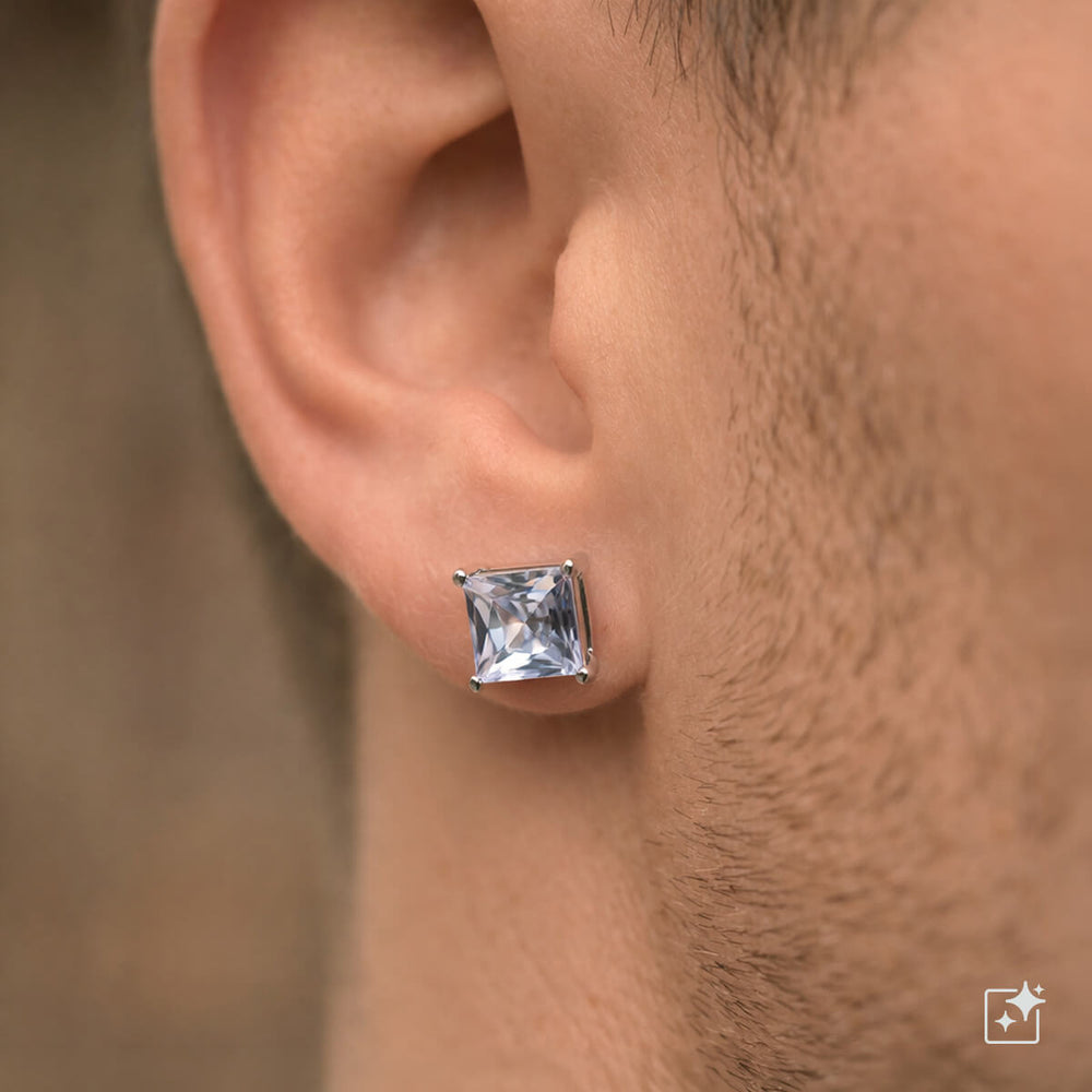 Zirconia square magnet earrings 8mm (Steel 316L)