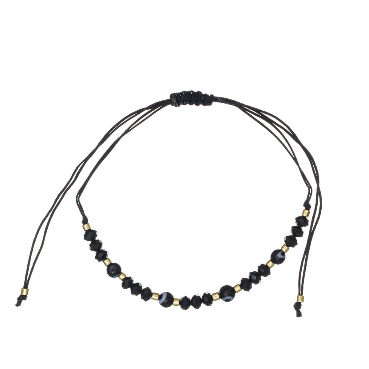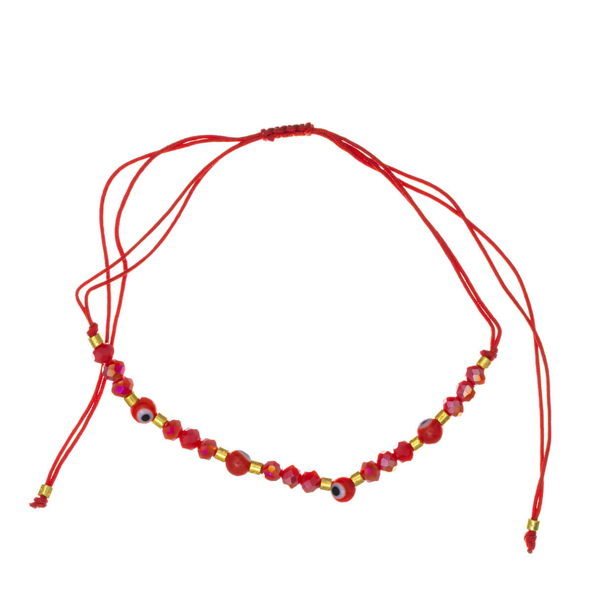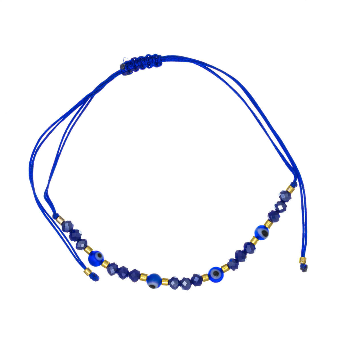 Fool's braided beads and evil eye beads adorn this adjustable bracelet. A beautiful summer bracelet that brings to mind beaches and sunshine. The bracelet is adjustable, so it easily fits wrists of different sizes.