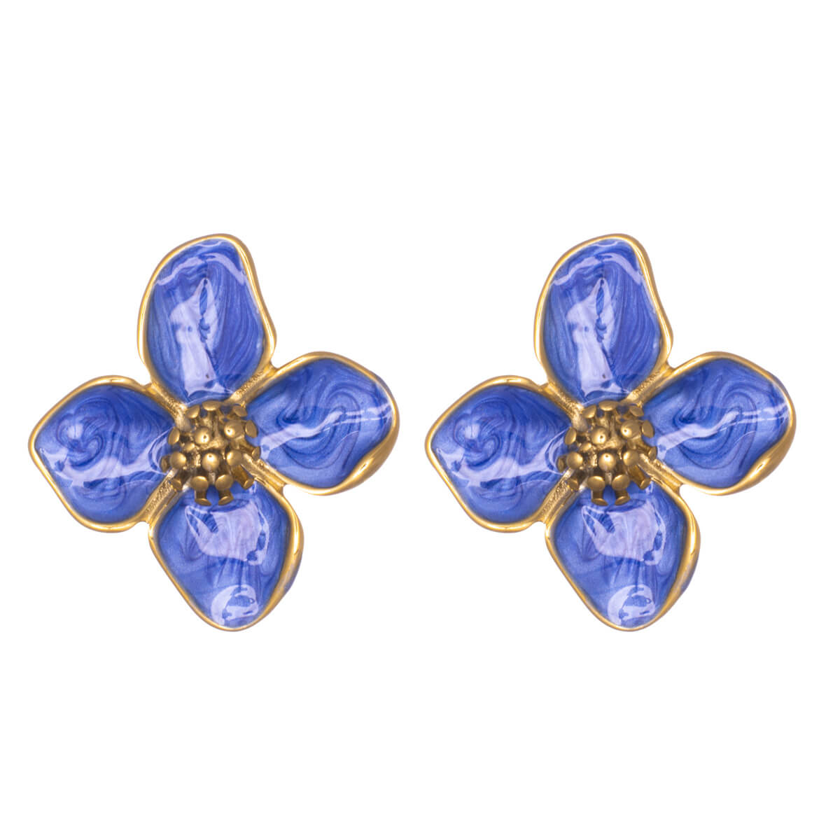 These elegant and eye-catching flower earrings are made of gold-plated surgical steel (316L). The flower shape of the earrings has been carefully finished, and the colored enamel surface gives the jewelry a beautiful, even tone and a light shine.