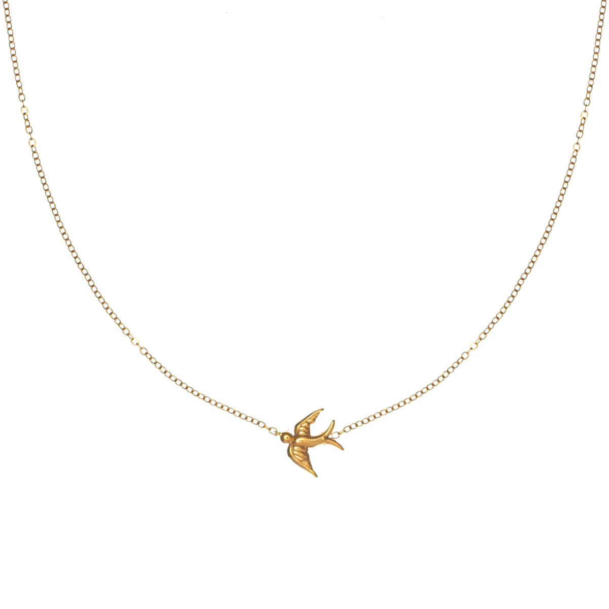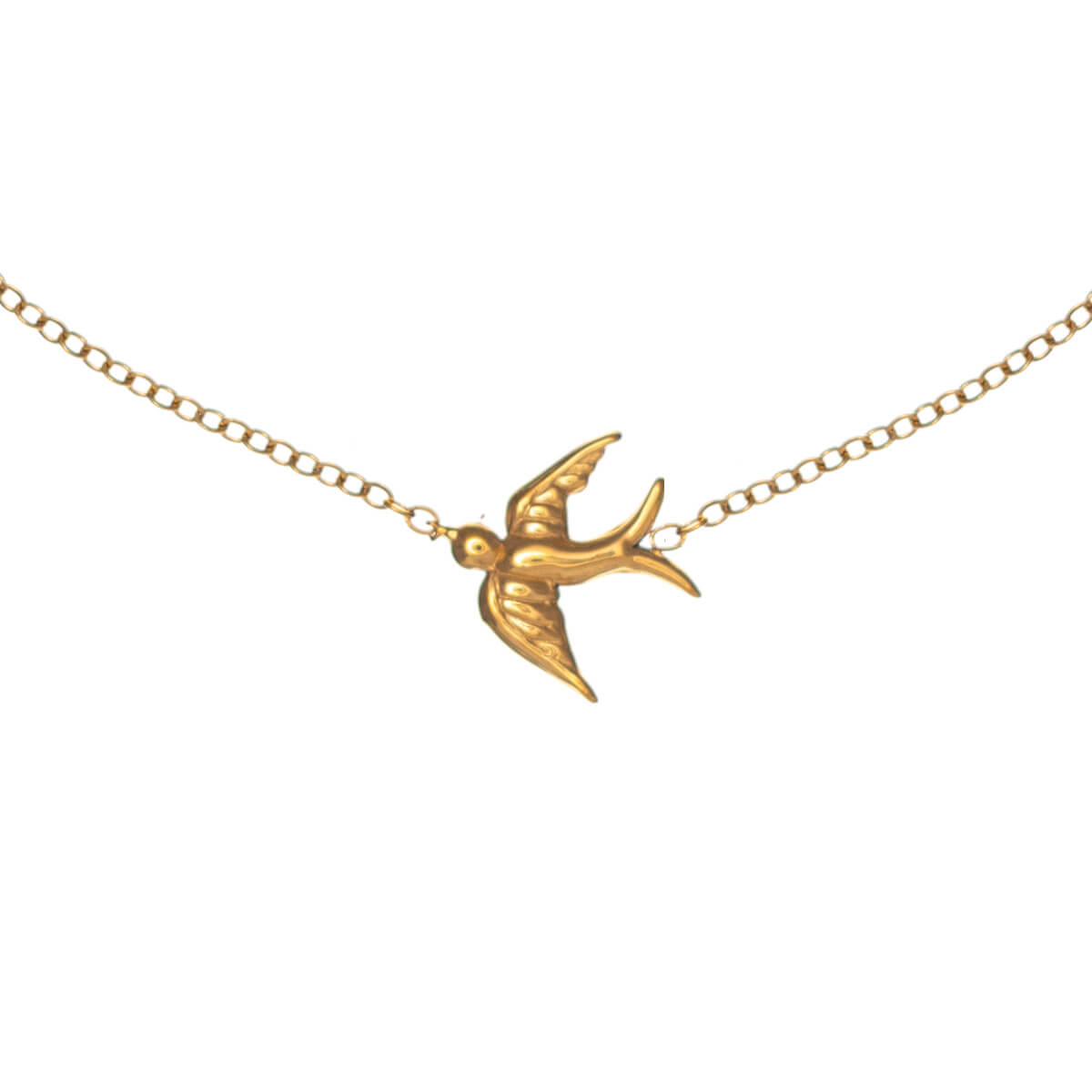 This thin necklace is easy to wear and discreet. The necklace is decorated with a small swallow in the center. The necklace is made entirely of surgical steel. The steel does not wear out with use.