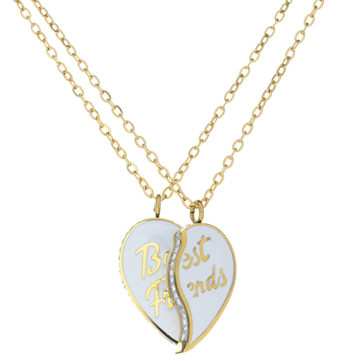 The best friend necklace is a best friend necklace. You can buy it as a gift for your best friend or go shopping together. The necklace is made entirely of safe surgical steel. The steel will not wear out in use, in the shower or sauna.