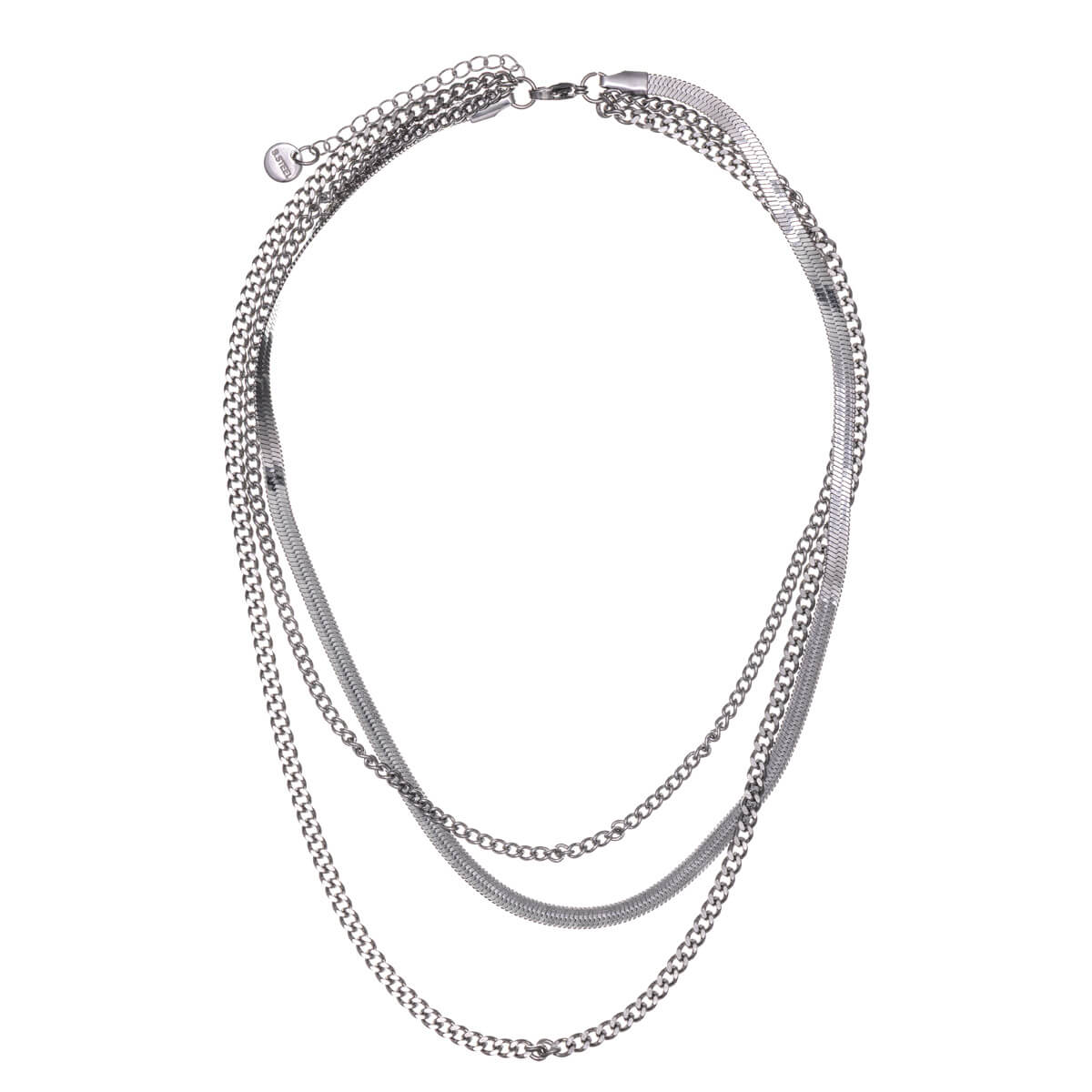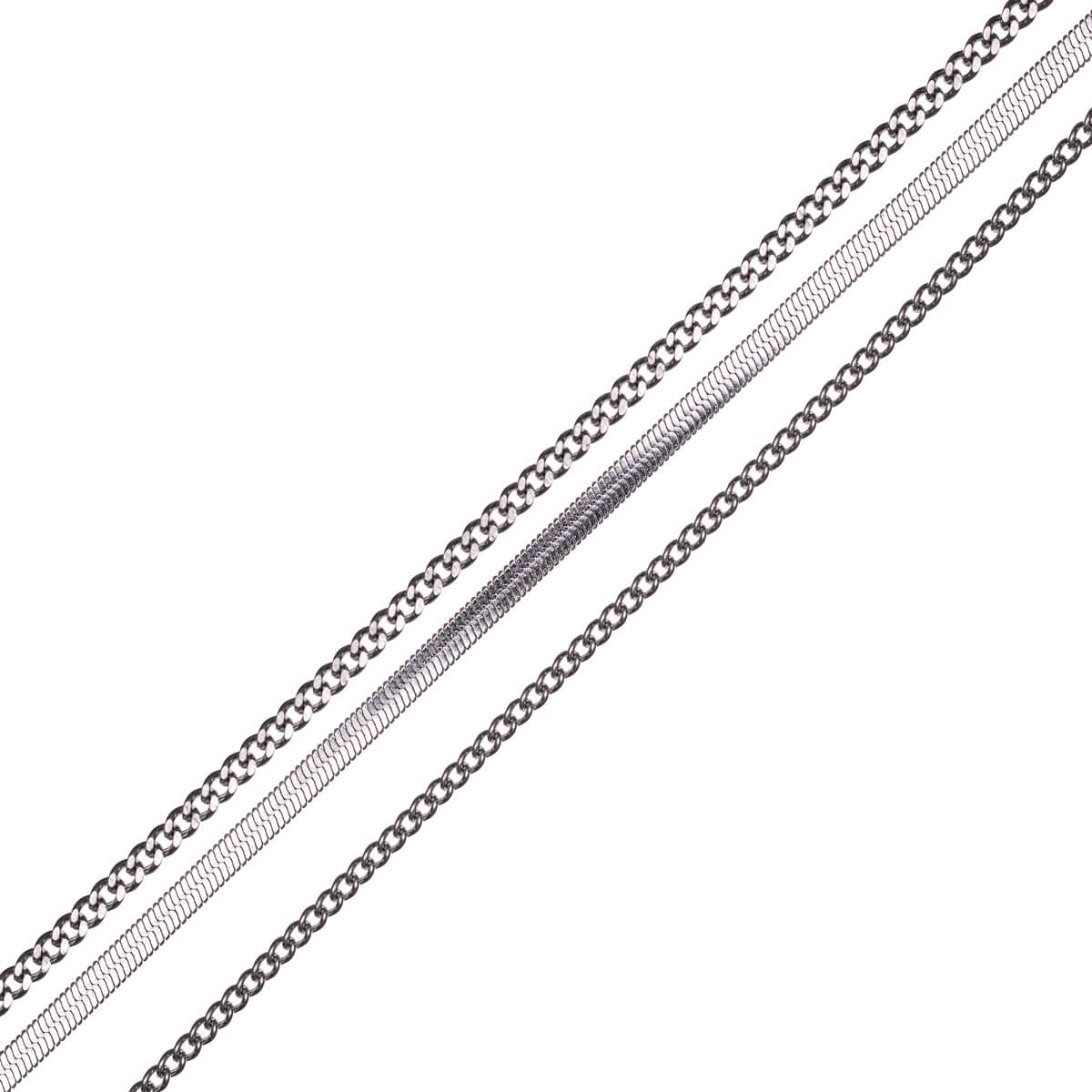 The combination of three different necklaces gives an elegant rich look. Multiple necklaces are suitable for many occasions. The chains are connected by a single clasp. The jewellery is made entirely of surgical steel, so it will not wear out in use.