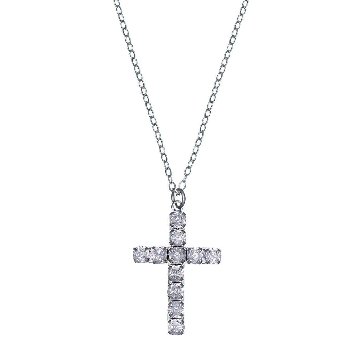 Zirconia cross pendant necklace 41cm +5cm (Steel 316L)