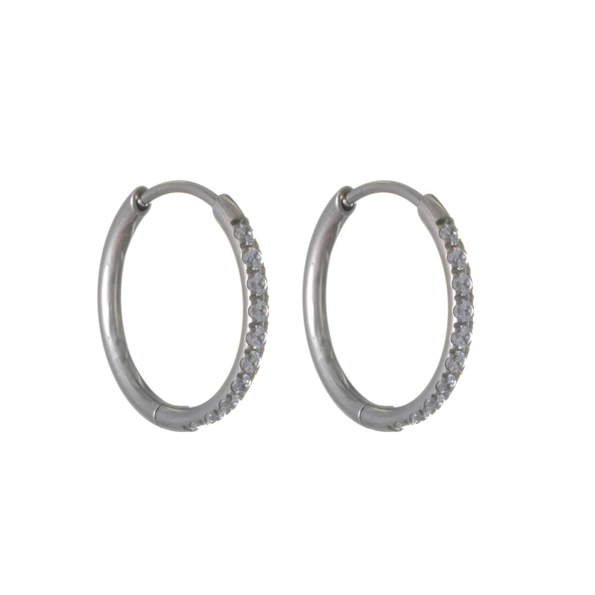 Stylish and timeless titanium earrings with zirconia stones, combining minimalist design with sophisticated sparkle.