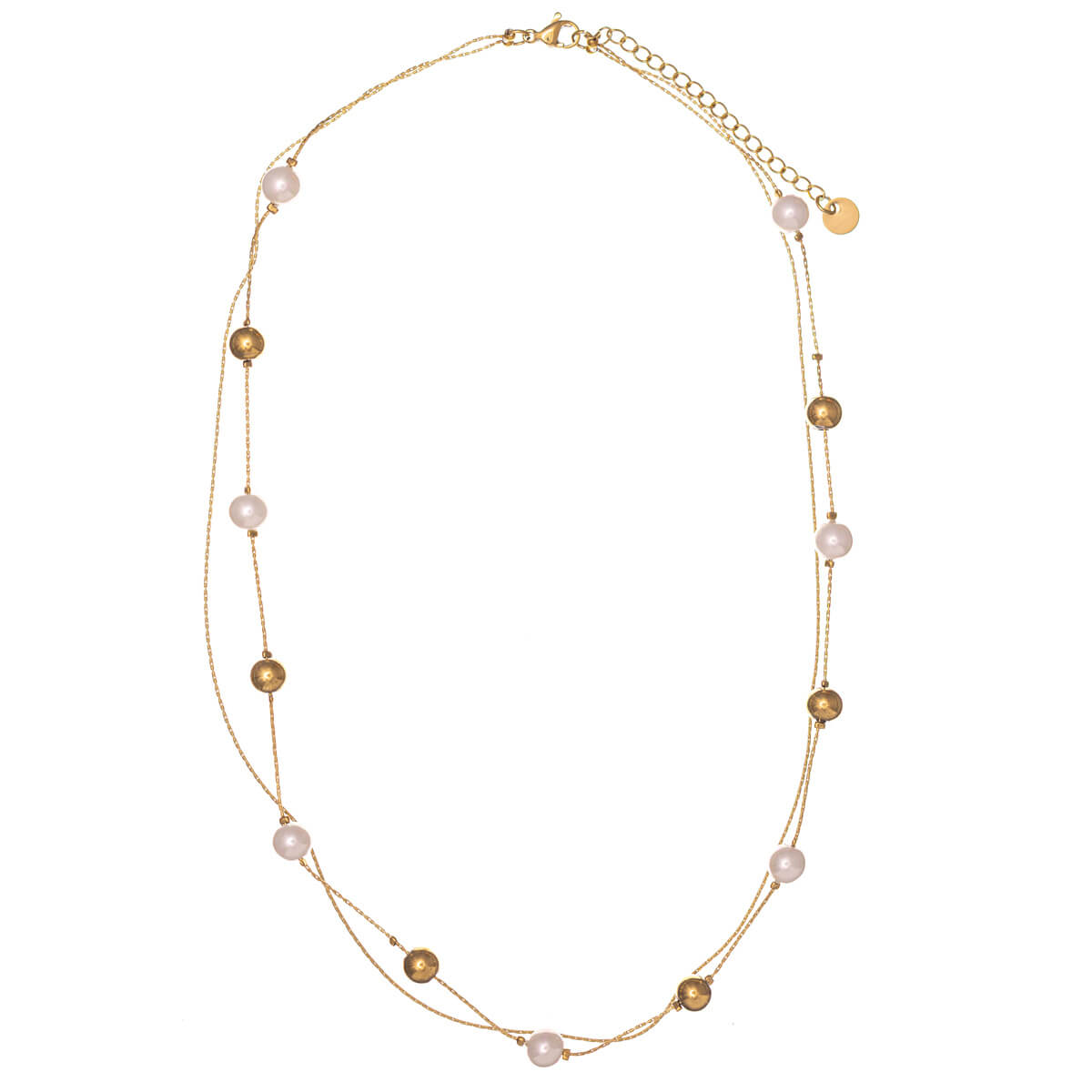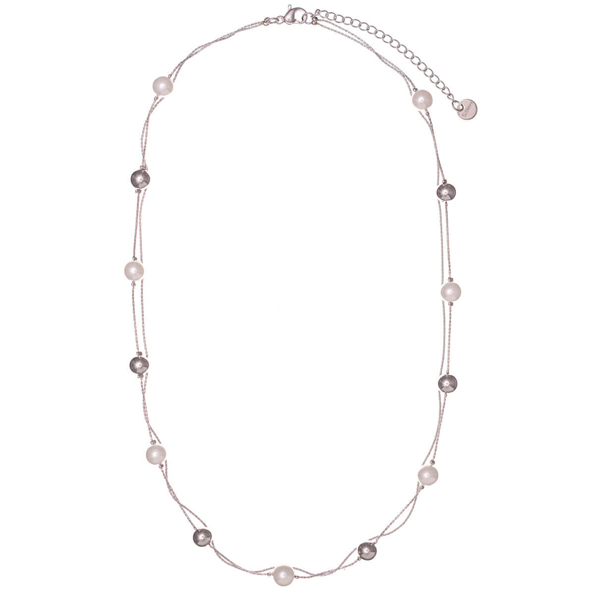 This thin necklace is decorated with white and steel beads. The necklace is made entirely of surgical steel.