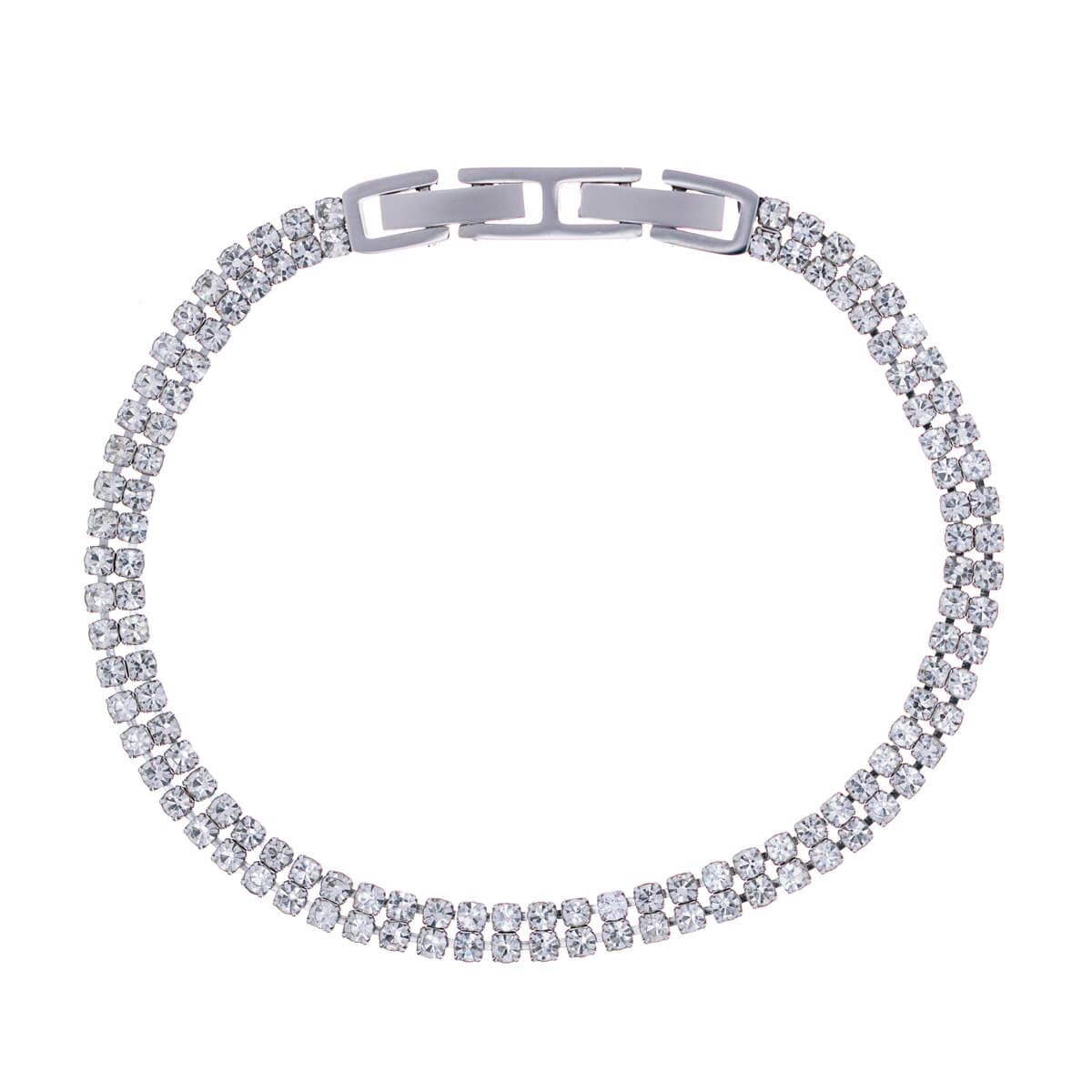 This classic party bracelet is studded with two rows of sparkling zirconia stones. The bracelet is made entirely of surgical steel. It has an extension piece that can be removed to shorten the bracelet.