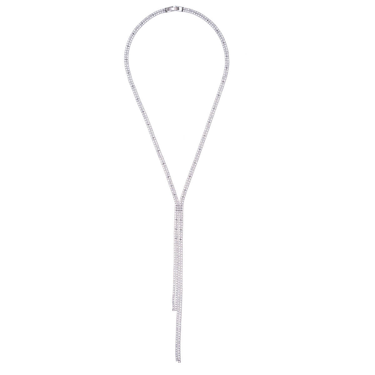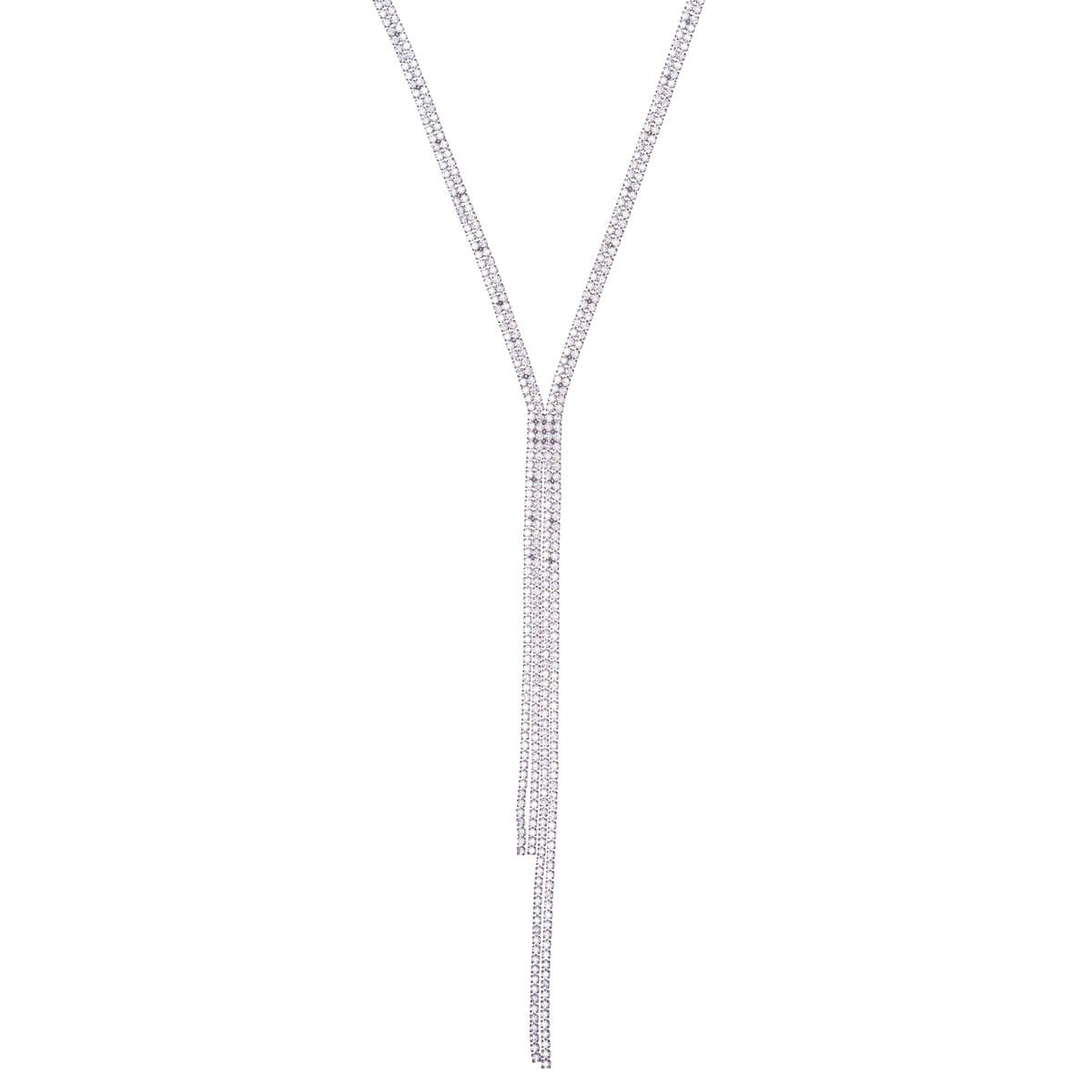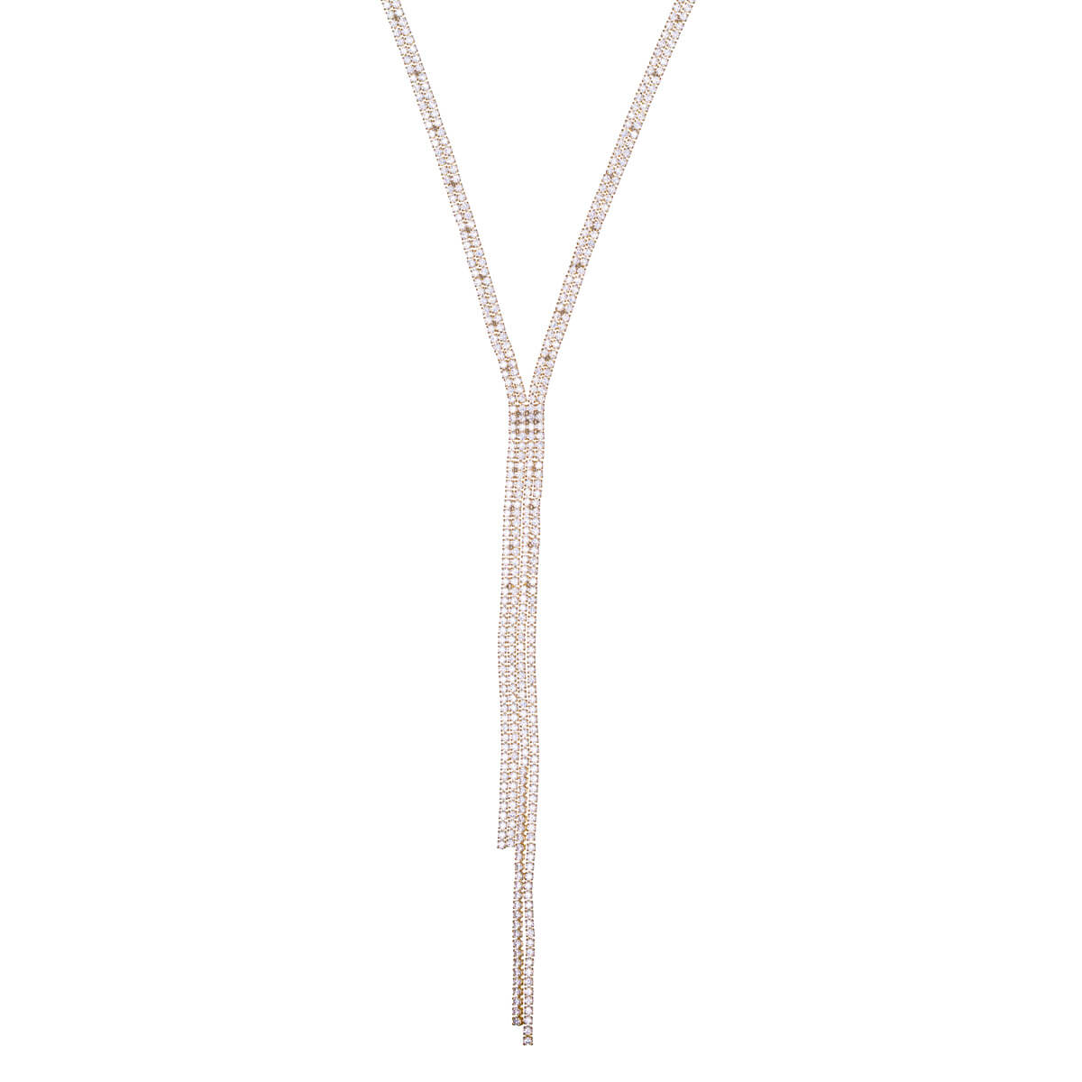 A striking and elegant double-row Y-shaped zirconia necklace, where the double-row chain resting on the neck continues into two hanging parts of different lengths. The double-row structure gives the necklace poise and luxury, while the Y-shape elongates the neckline and beautifully accentuates a festive outfit.