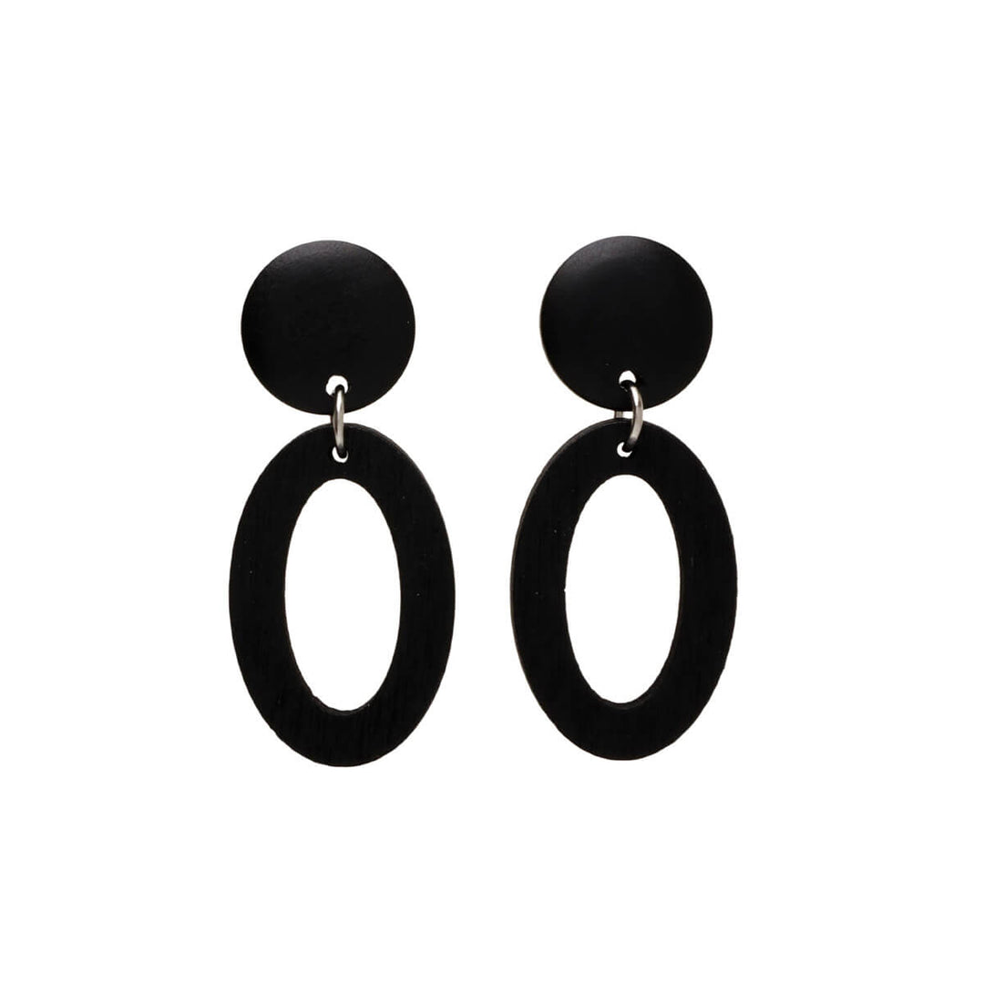 Oval wooden clip earrings - Made in Finland (Steel 316L)