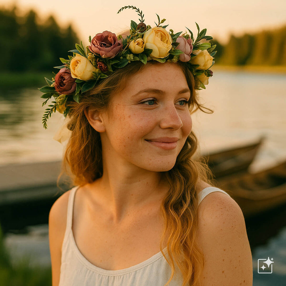 A Midsummer wreath for hair is usually made of fresh flowers and green leaves. Typically, the flowers of a midsummer wreath are yellow, white and red. However, you can also use other flowers such as pansies, tongues, dandelions or daisies, which are common Midsummer flowers.