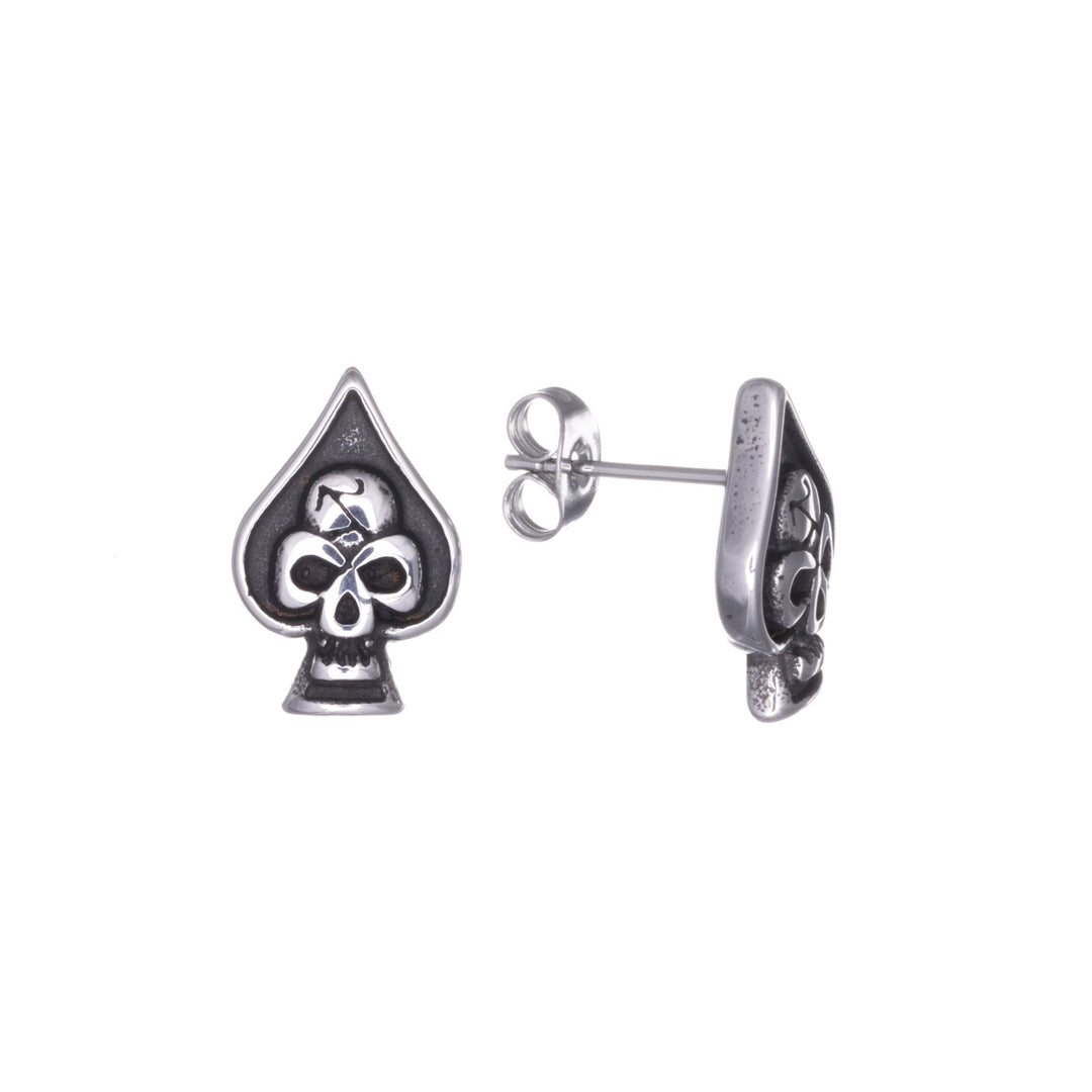 Steel Ace of Spades earrings with skull (Steel 316L)