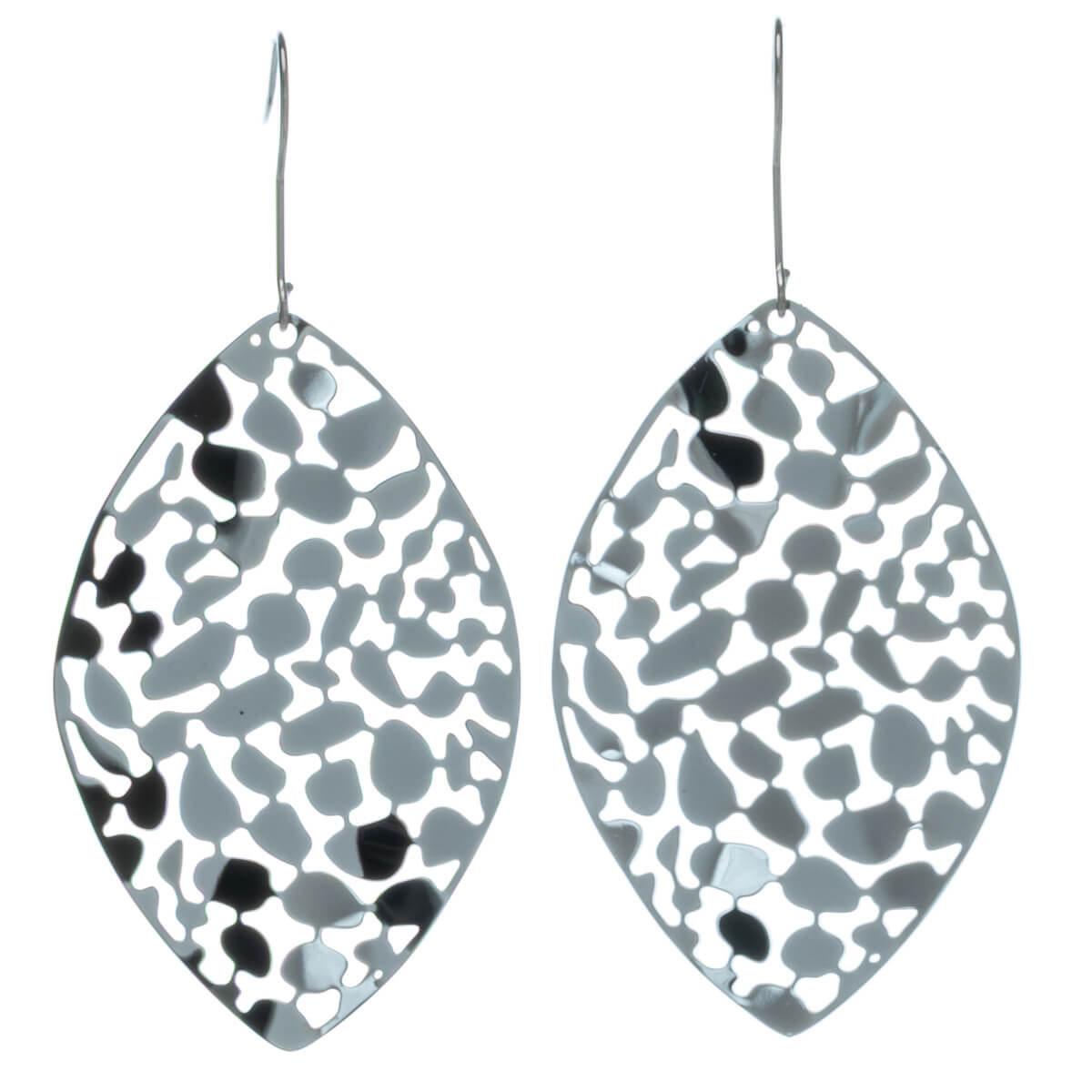 Thin textured earrings with a leaf-like shape. The elegant design and the steel material make it ideal for everyday use. Made entirely of surgical steel. The jewellery will not wear out in use.