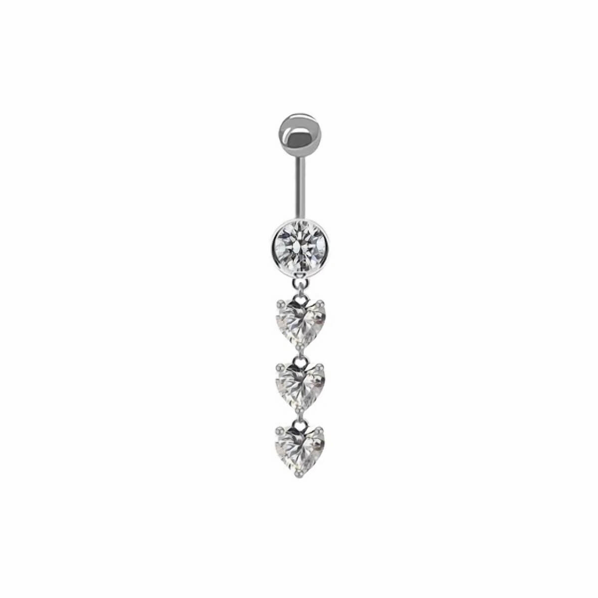 Three clear heart-shaped zirconia stones dangle beautifully in this button chain design. The pendant has a durable surgical steel frame. It is made entirely of surgical steel, so the pendant will not wear out in use.
