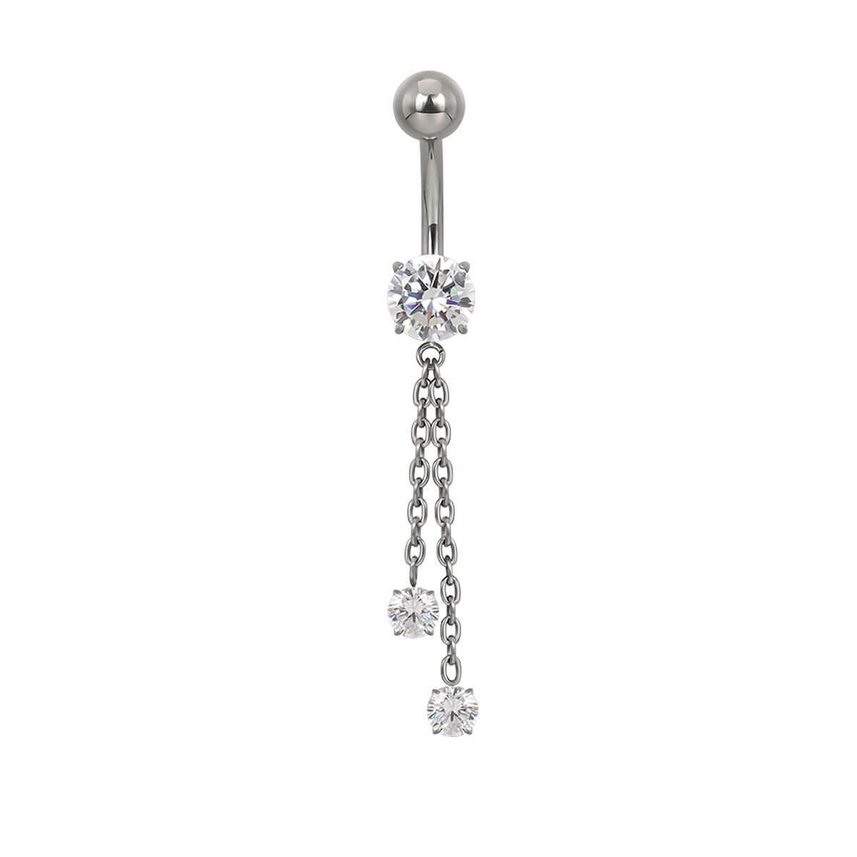 Titanium hanging belly button chain with zirconia stones (Titanium G23)