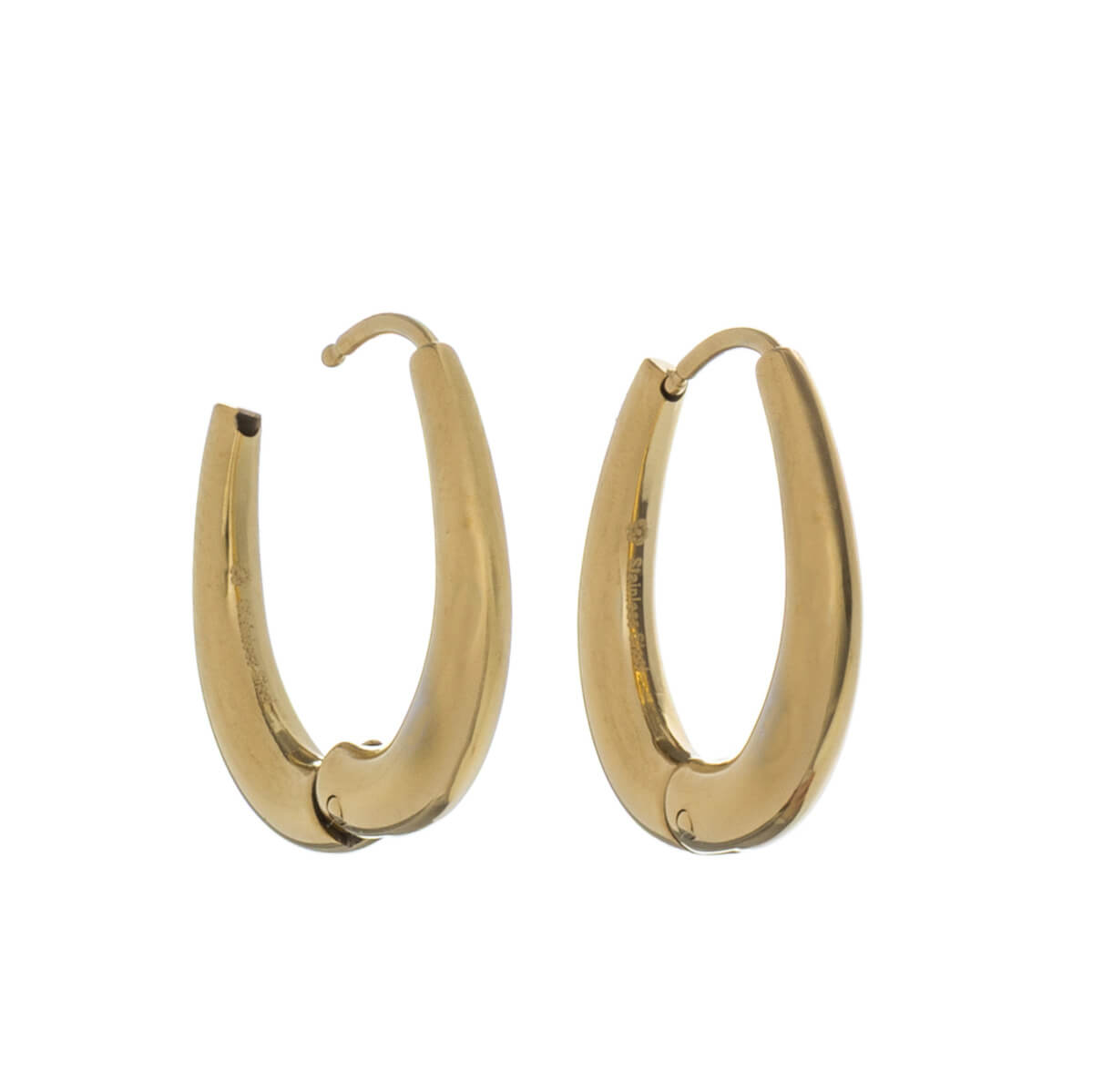Steel wide earrings are stylish and durable. The hinged opening mechanism is easy to use. The product is made entirely of steel.