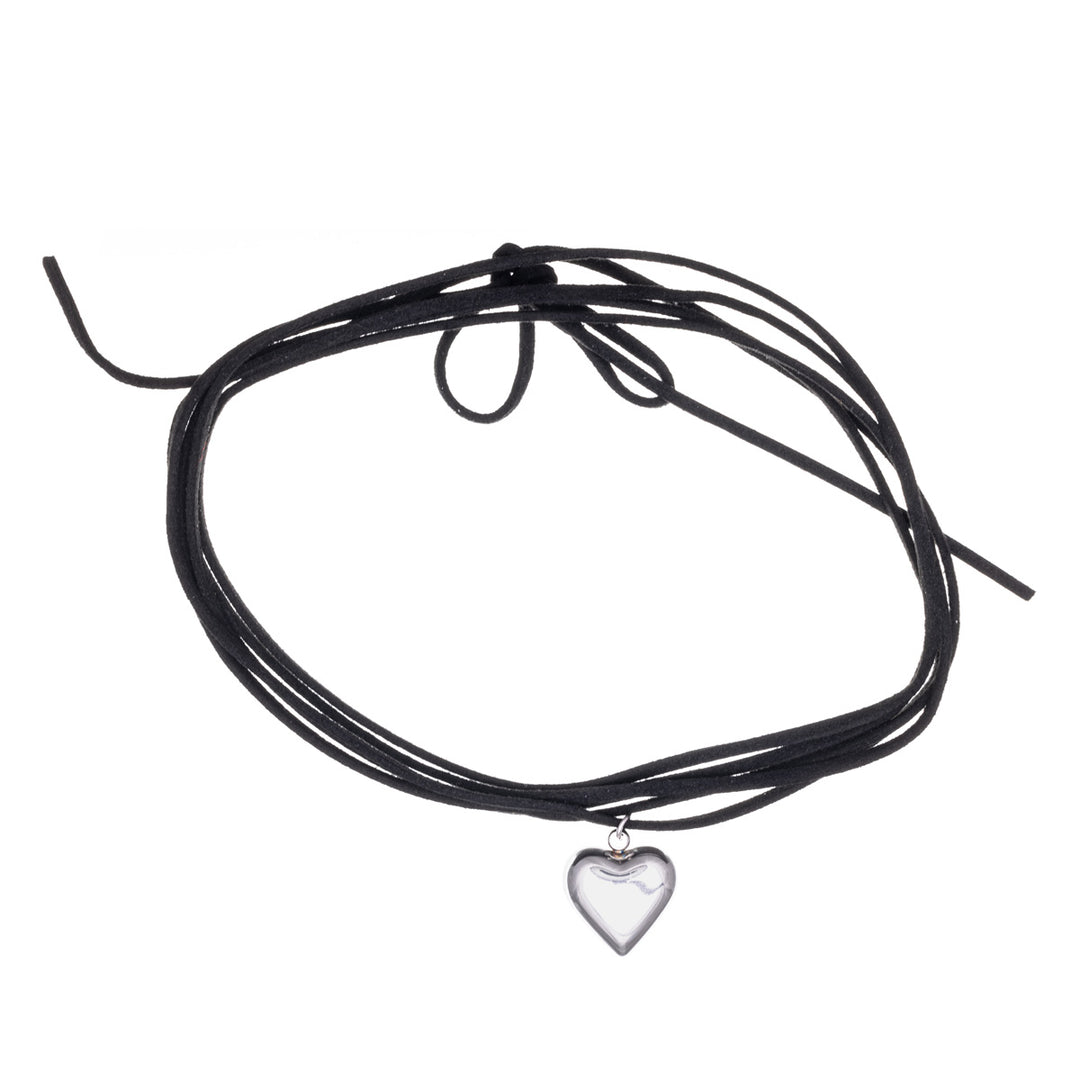 Wrap-around choker necklace with heart pendant (Steel 316L)