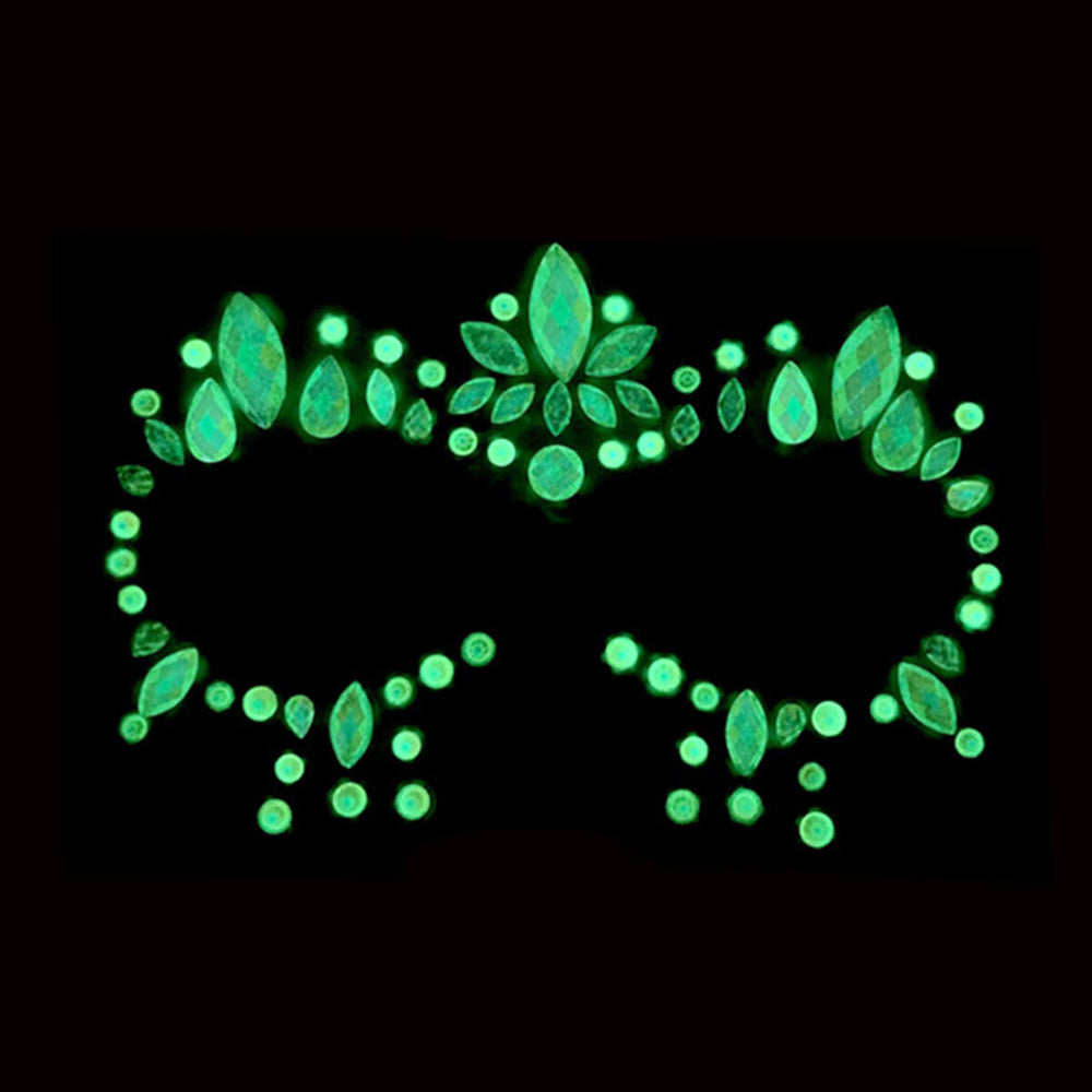 Skin-diamanter är fosforbelagda och lyser grönt i mörkret. För att kunna lysa i mörkret måste fosforn först absorbera en tillräcklig mängd ljus. Skin-diamanter är lätta att fästa på huden tack vare den enhetliga självhäftande ytan, så att du inte behöver fästa varje sten separat.