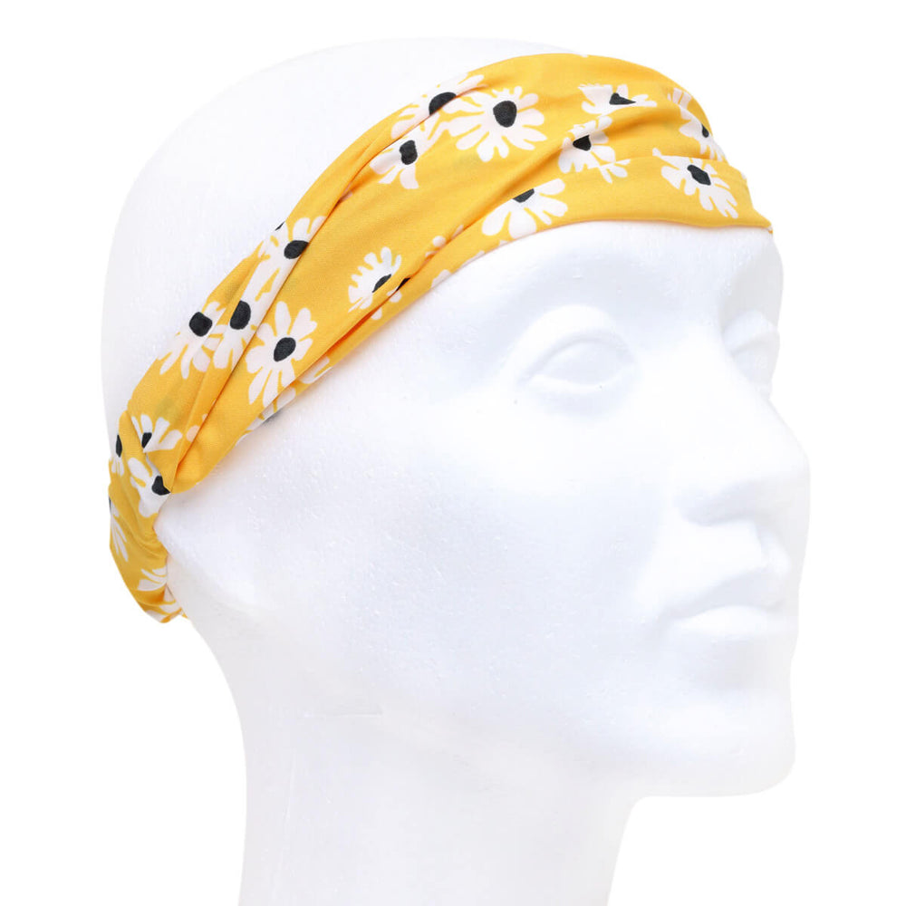 Elastisk pannband är alltid en enkel lösning. Det elastiska hårstycket är bekvämt att använda och pressar inte. I den här modellen sprids den smala nackdelen till en bred krage på toppen.