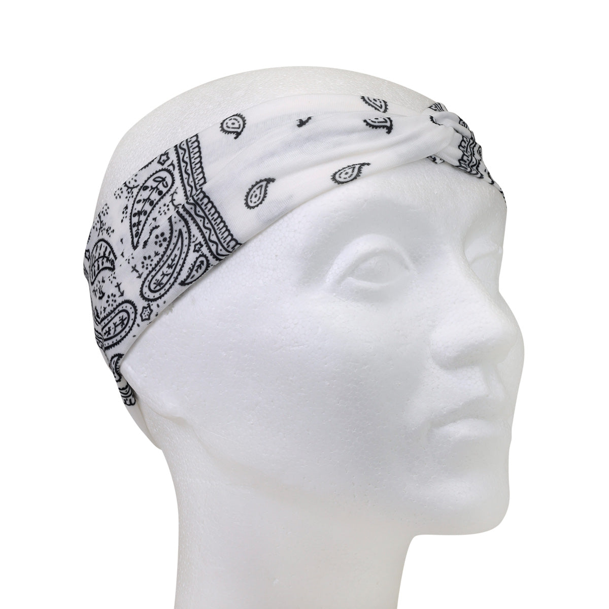 Elastisk pannband är alltid en enkel lösning. Det elastiska hårstycket är bekvämt att använda och pressar inte. Det snygga paisley -mönstret är direkt från den klassiska bandana.