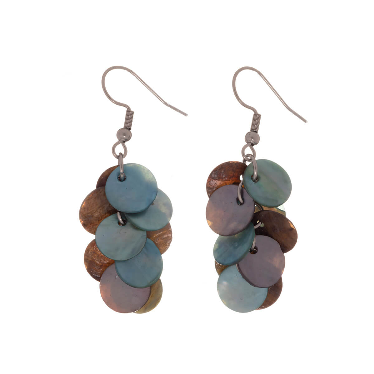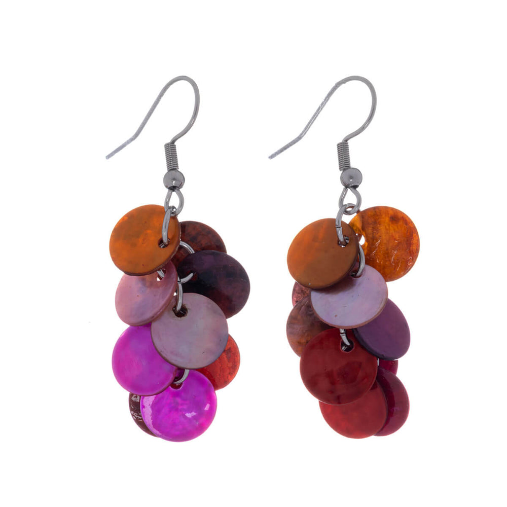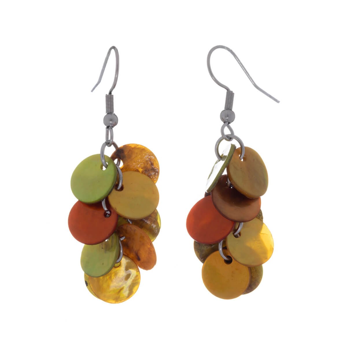 Flerfärgade klusterörhängen är den perfekta färgaccenten till din outfit. Den vackra skalmassan är ett livfullt vackert material. Den snäckliknande ytan glittrar vackert i ljuset.
