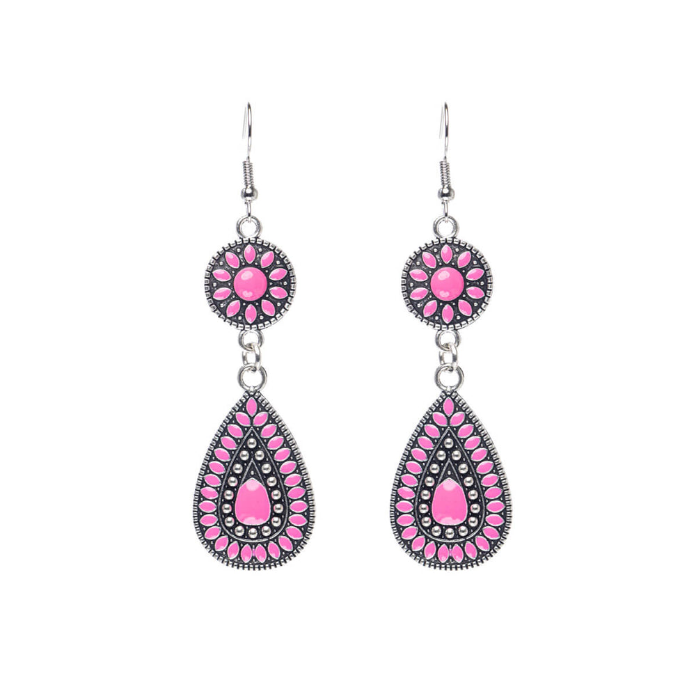 Vackert färgade droppformade örhängen är en återhållsam färgplats i din outfit. Den forntida silverskuggan är stilfullt mörk.