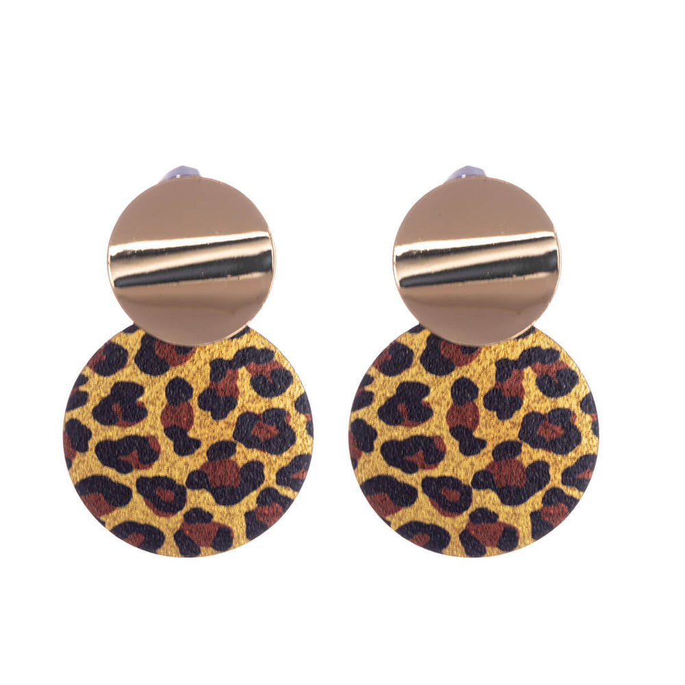 Leopardmönstrade plattor pryder detta glittrande guldfärgade örhänge.