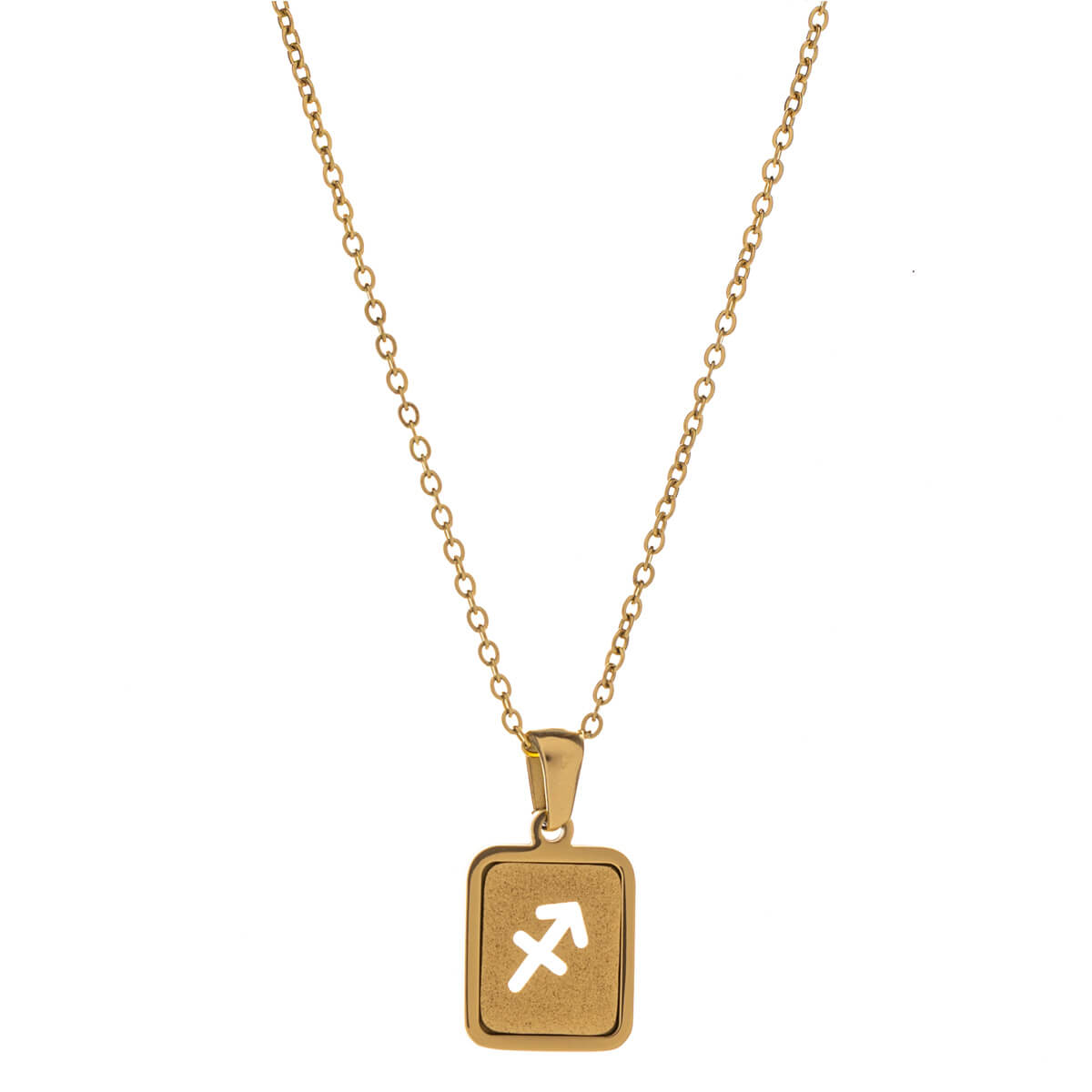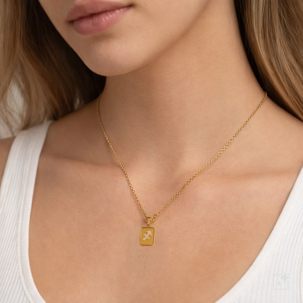 Ett tidlöst och minimalistiskt horoskop-halsband som låter dig bära ditt stjärntecken med dig varje dag. Den fyrkantiga hängen är graverad med ditt horoskop-symbol i en stilren och tydlig design.